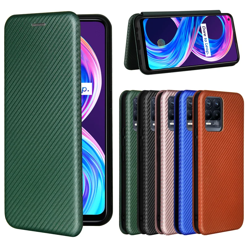 Чехол для OPPO Realme 8 4G 5G, роскошный флип-чехол из углеродного ...