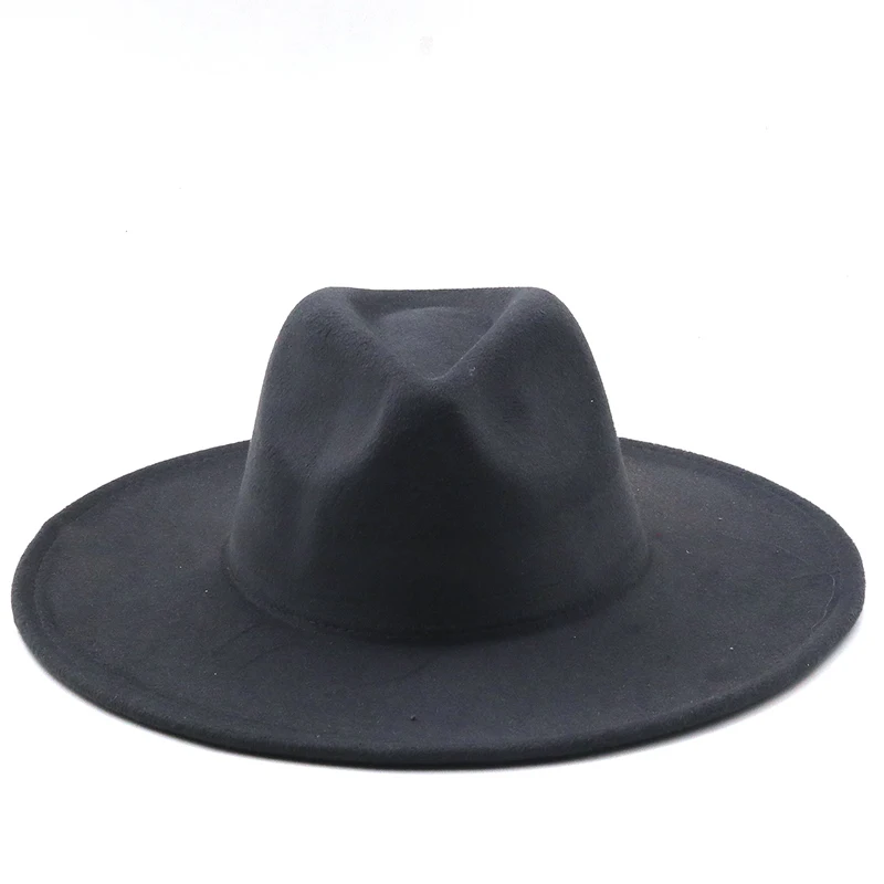 Простой британский стиль, Зимняя шерстяная однотонная Классическая Шляпа Fedora, для мужчин и женщин, Панама джазовая, шляпа 9,5 см с широкими полями, большая фетровая шляпа