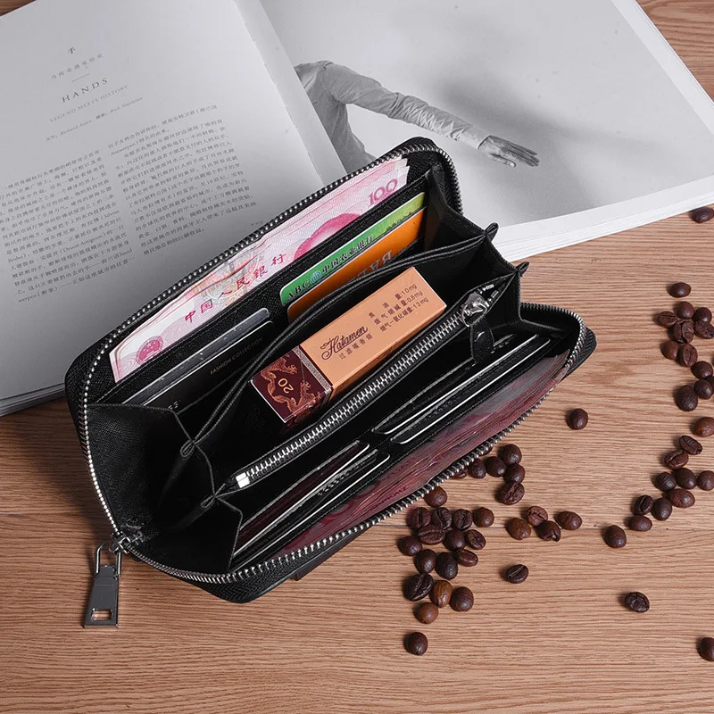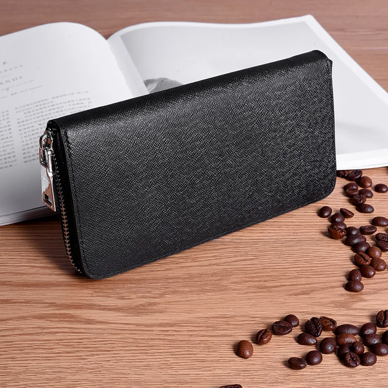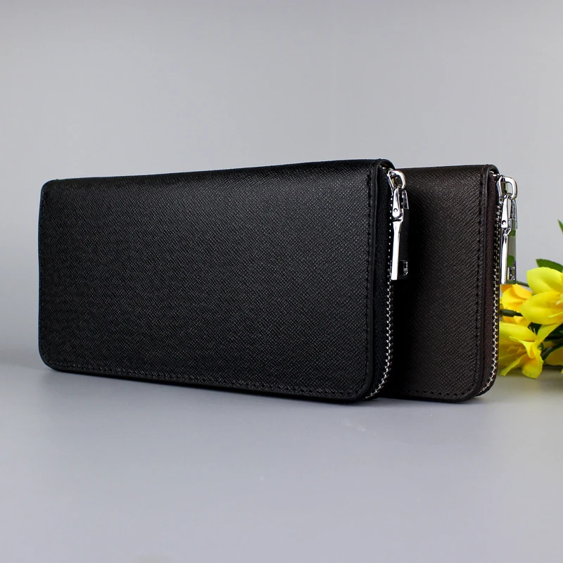 Длинный кошелек для мужчин, бумажники из натуральной кожи на молнии, однотонный деловой клатч для сотового телефона, вместительный держатель для карт
