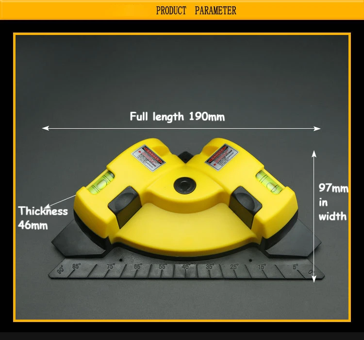 1. Удобный и компактный лазерный нивелир, который может создавать две линии на полу, стене или другой поверхности под углом 90 градусов, чтобы помочь вам квадратизировать, выровнять и углом под углом 90 градусов для планировки поверхности, включая плитку, картина, камень, кирпич, ковер, паркет и многое другое