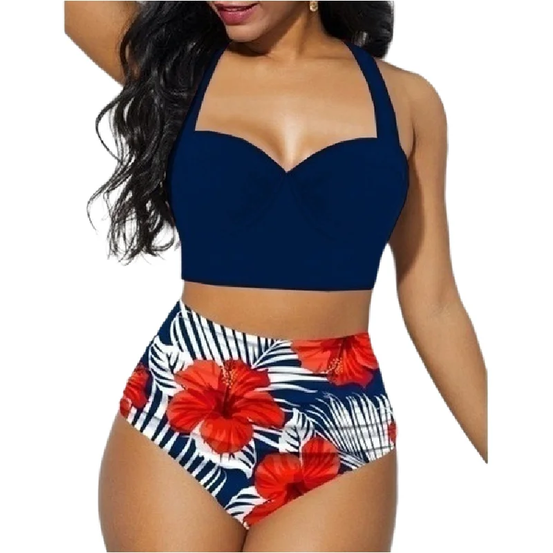 Новый женский купальник, сексуальный бикини большого размера с принтом, раздельные купальники