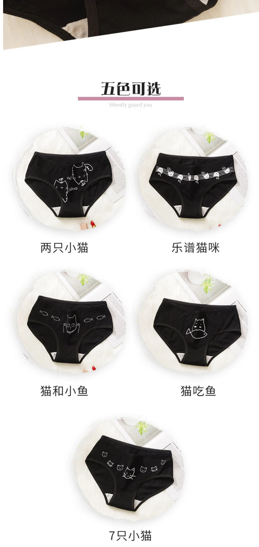 Хлопковые женские трусики, женское нижнее белье с мультяшным котом,...