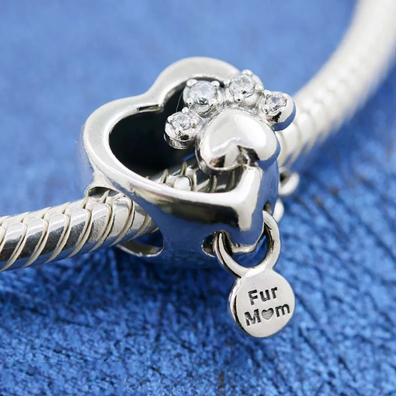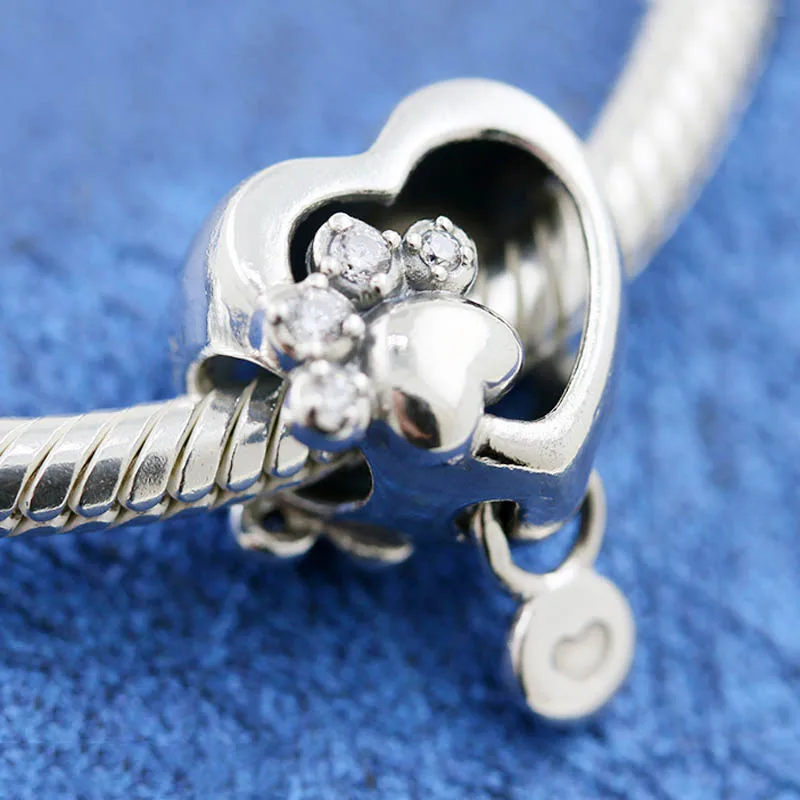 Кулон из серебра 925 пробы с подвесками в виде собачьей лапы и сердца