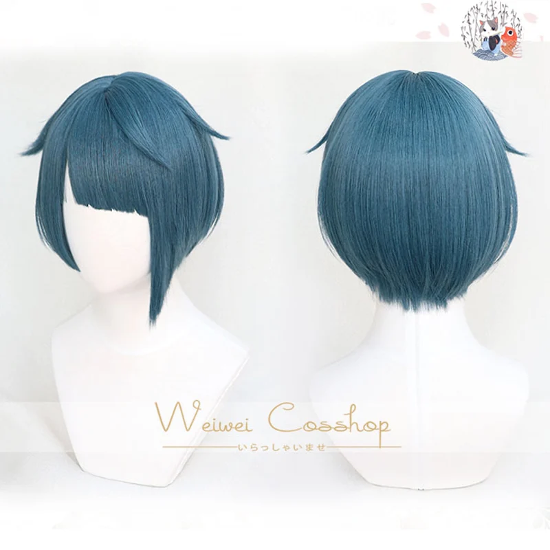 Синтетический парик Genshin Impact Xingqiu Xing Qiu для косплея, короткие синие короткие термостойкие волосы для взрослых, мужчин, женщин, мужчин, Бесплатная шапка на Хэллоуин