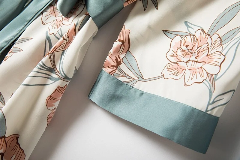Пижамный костюм интимное нижнее белье сексуальные пижамы и халаты костюм кимоно; Банный халат; Атласная цветочный Рисунок Пижама домашняя одежда
