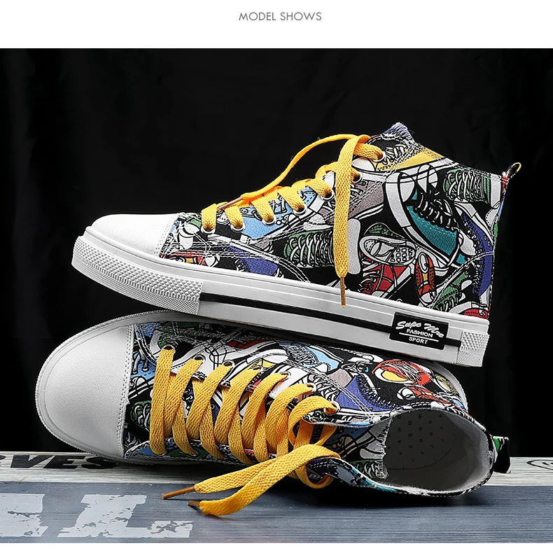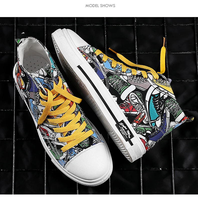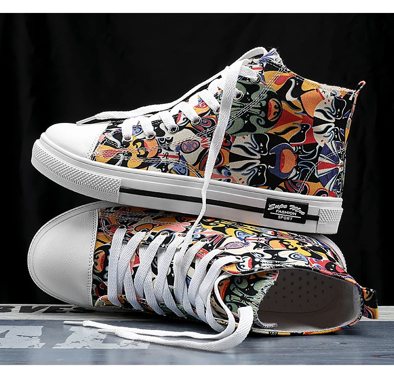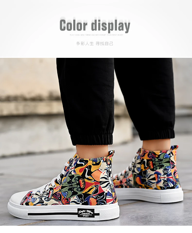Кеды унисекс, холщовые кроссовки с высоким берцем, на шнуровке, классические, граффити, Вулканизированная подошва, Повседневная камуфляжная обувь, для мужчин и женщин