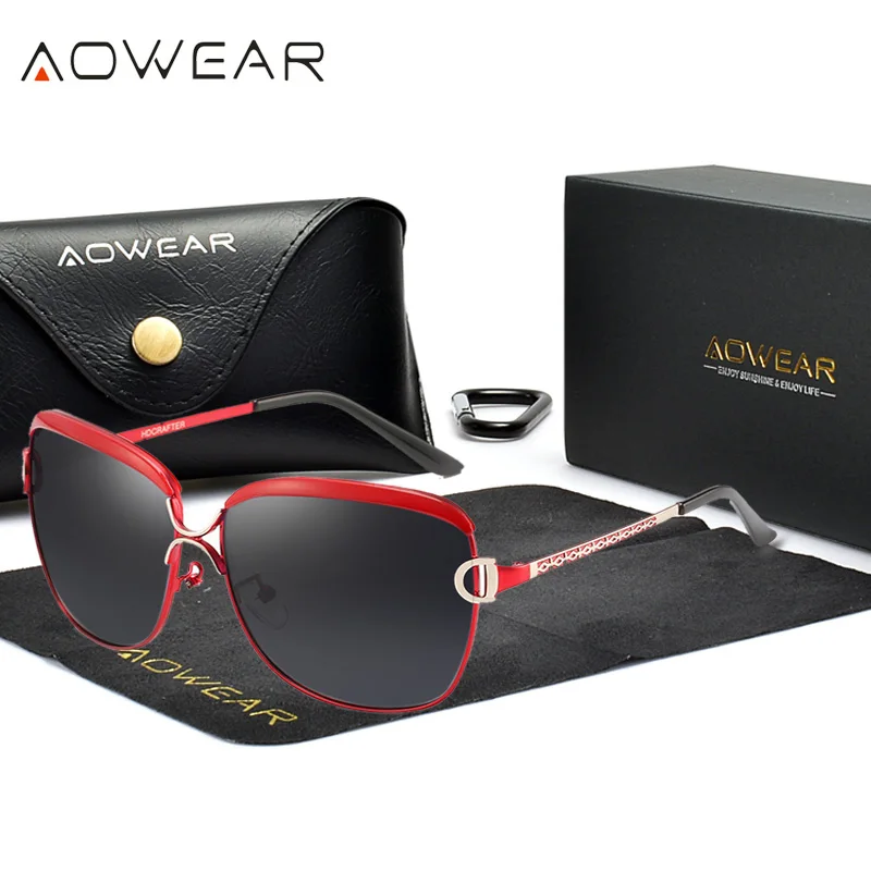 AOWEAR Роскошные негабаритные поляризационные солнцезащитные очки женские модные UV400 Винтажные кошачьи Солнцезащитные очки женские брендовые дизайнерские очки