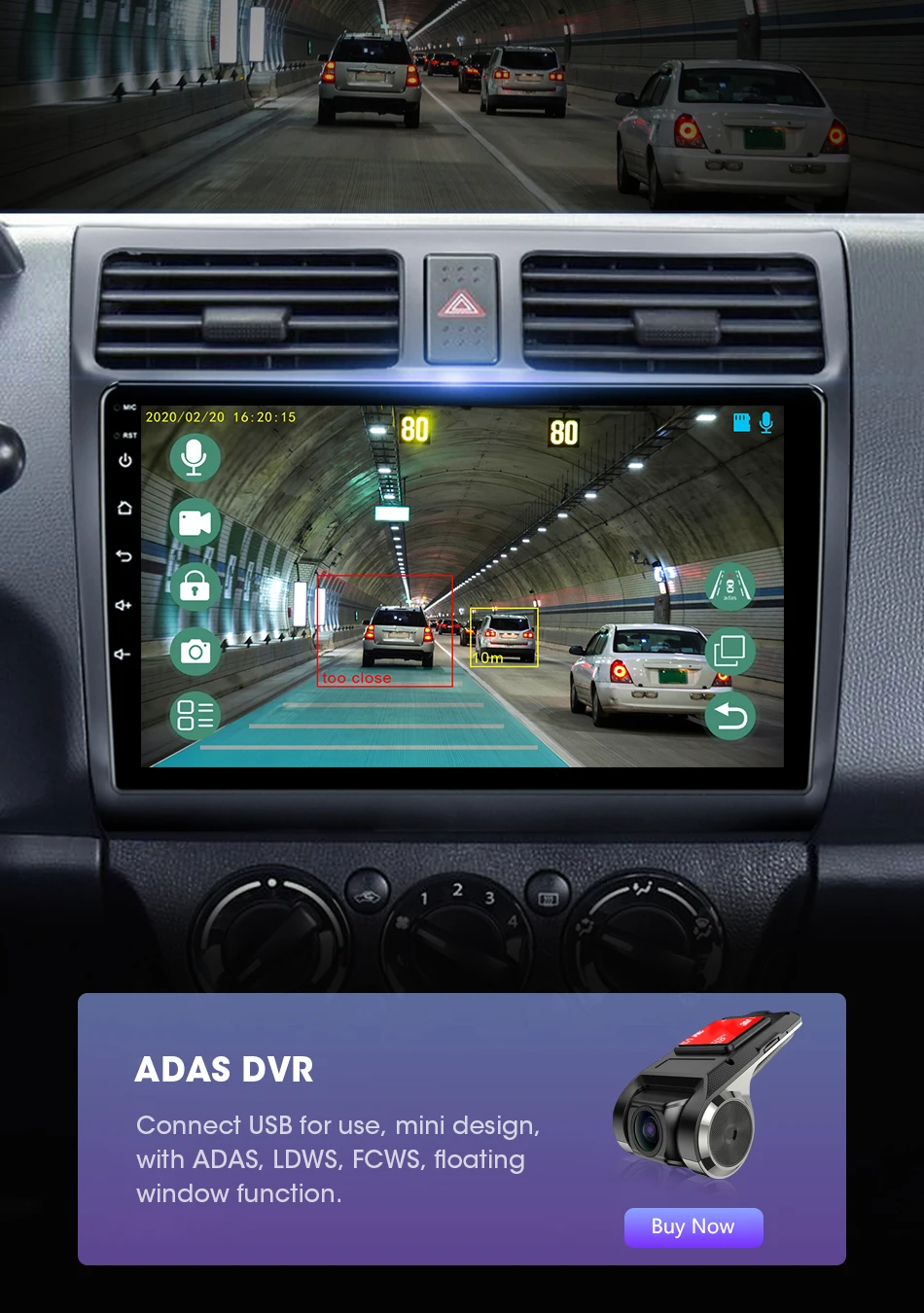 Поддерживает подключение к видеорегистраторУ ADAS. ADAS DVR имеет несколько встроенных ассистивных технологий вождения,