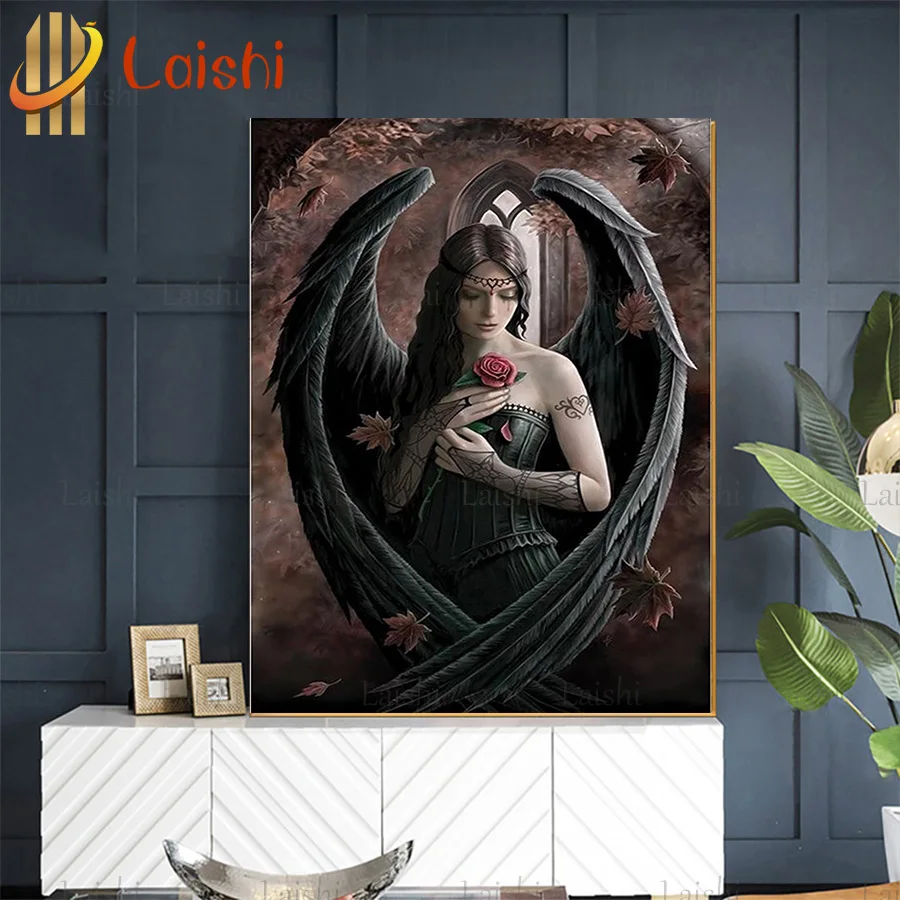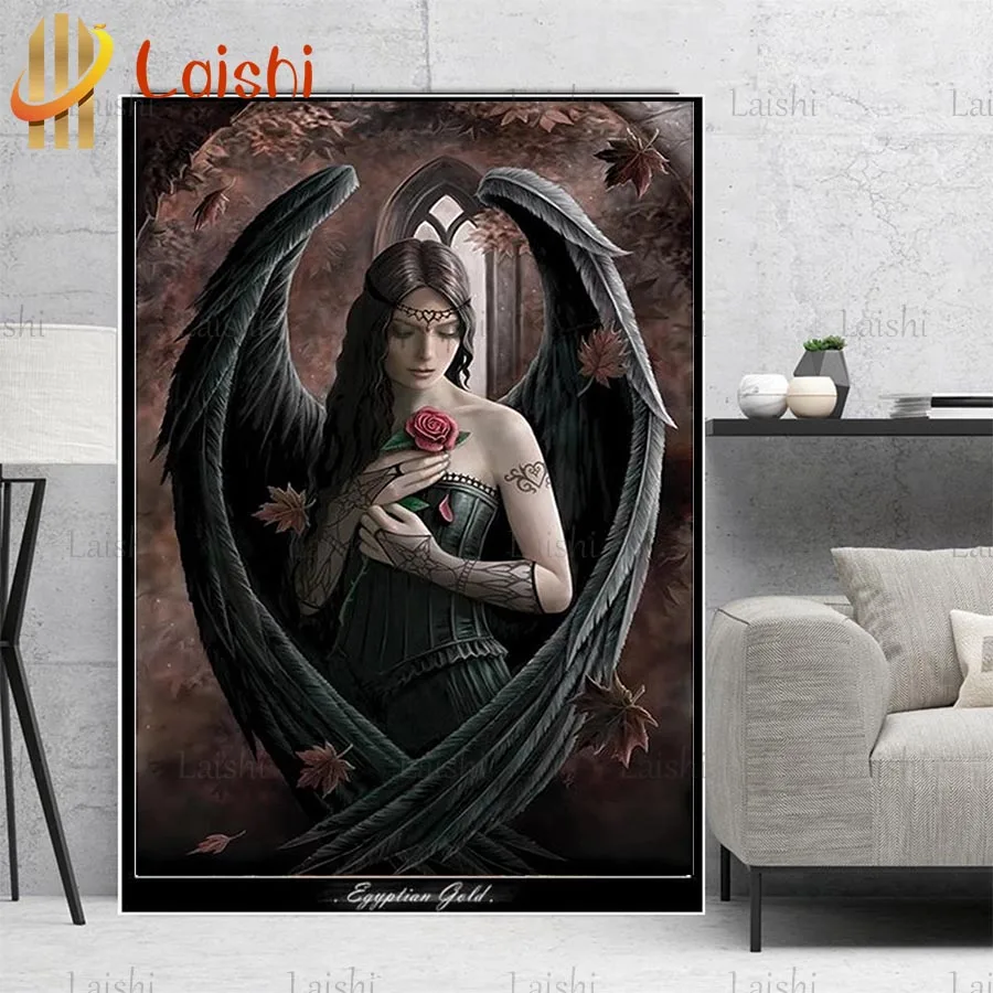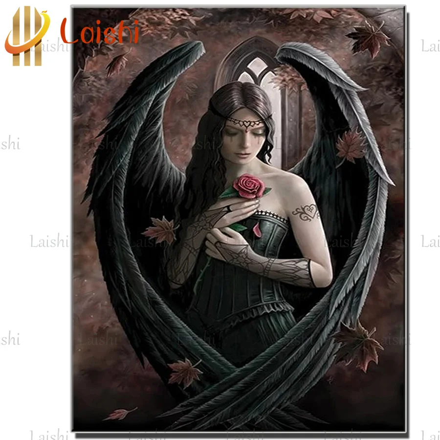 5d домашнее украшение, Привлекательный Черный ангел с розой, алмазная живопись, полная выкладка, квадратная, круглая Алмазная вышивка, Алмазная мозаика