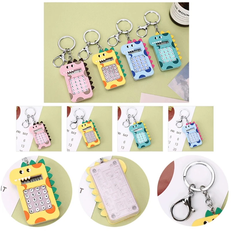 R58A мини калькулятор мультфильм брелок для ключей динозавры сумка украшения подвеска брелок для автомобиля брелок для ключей для мужчин и женщин студентов, ювелирное изделие, подарок