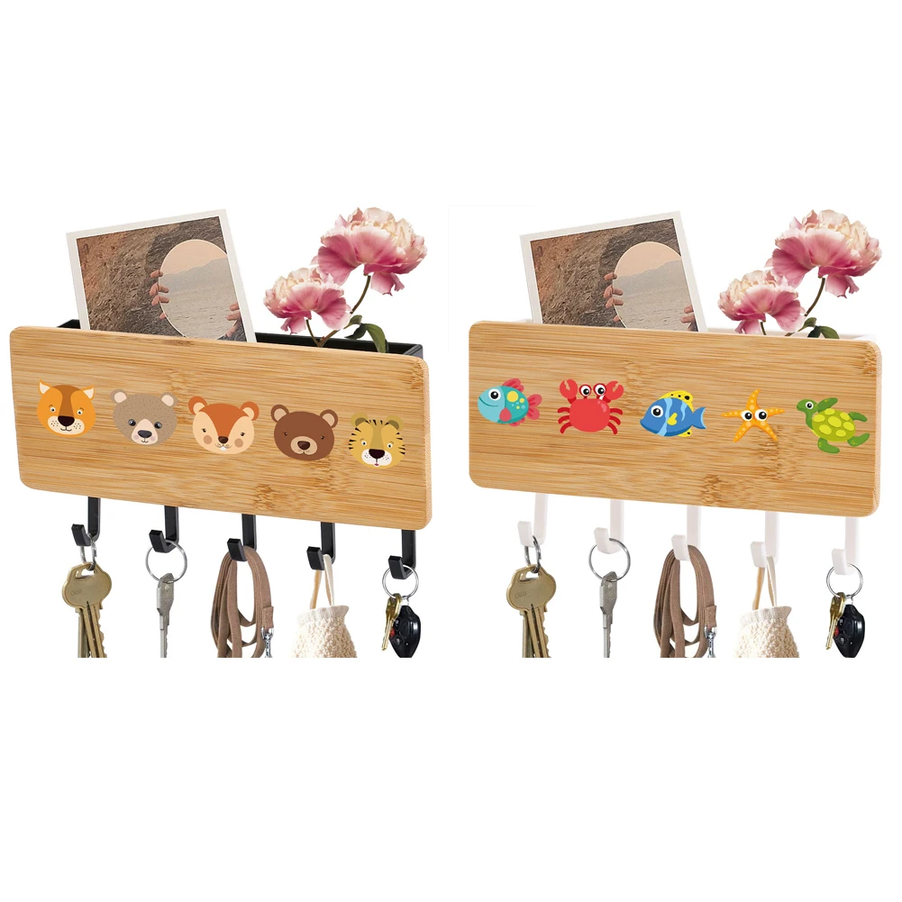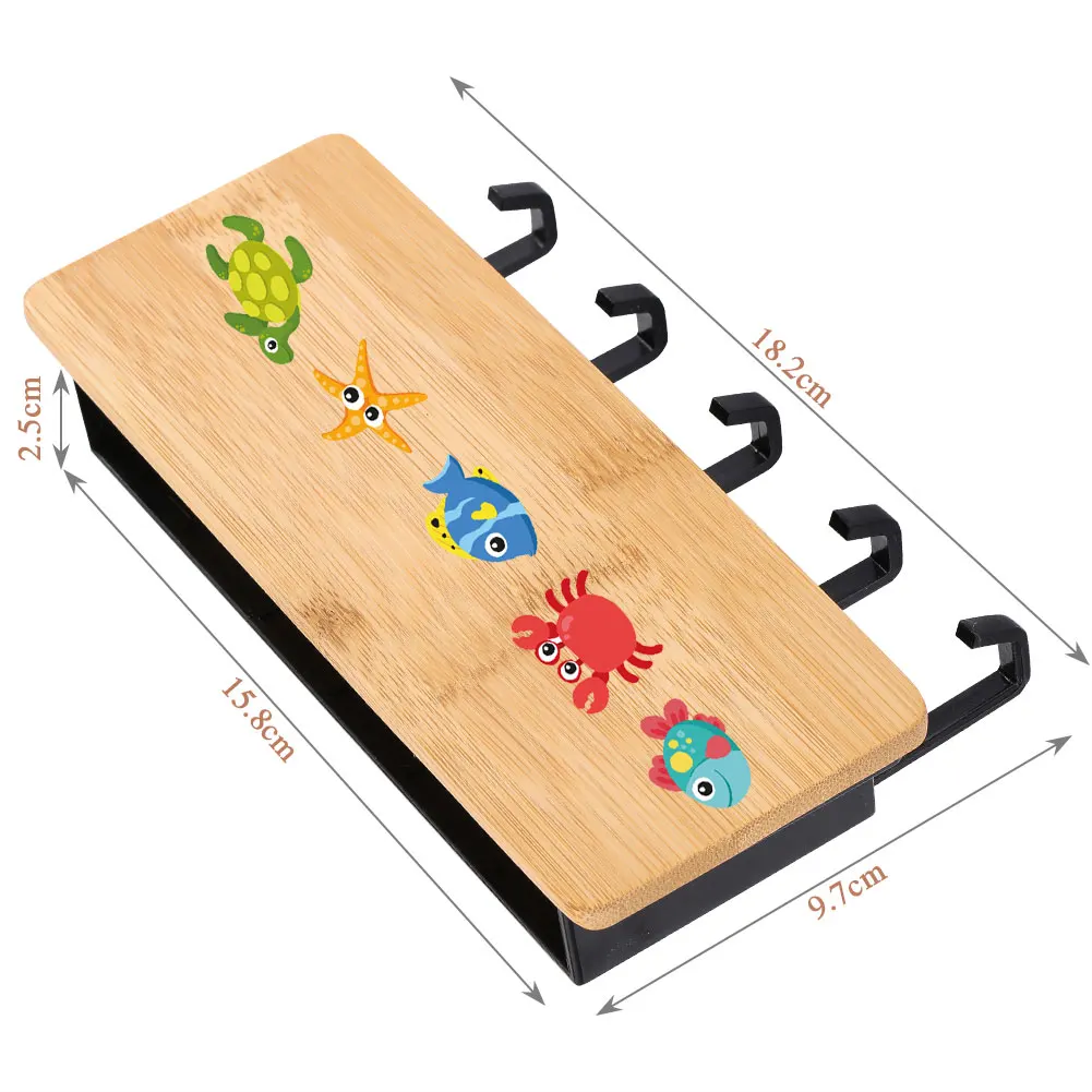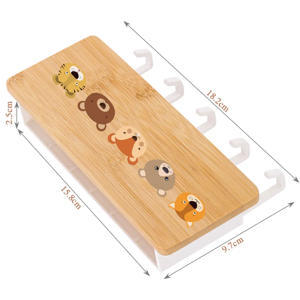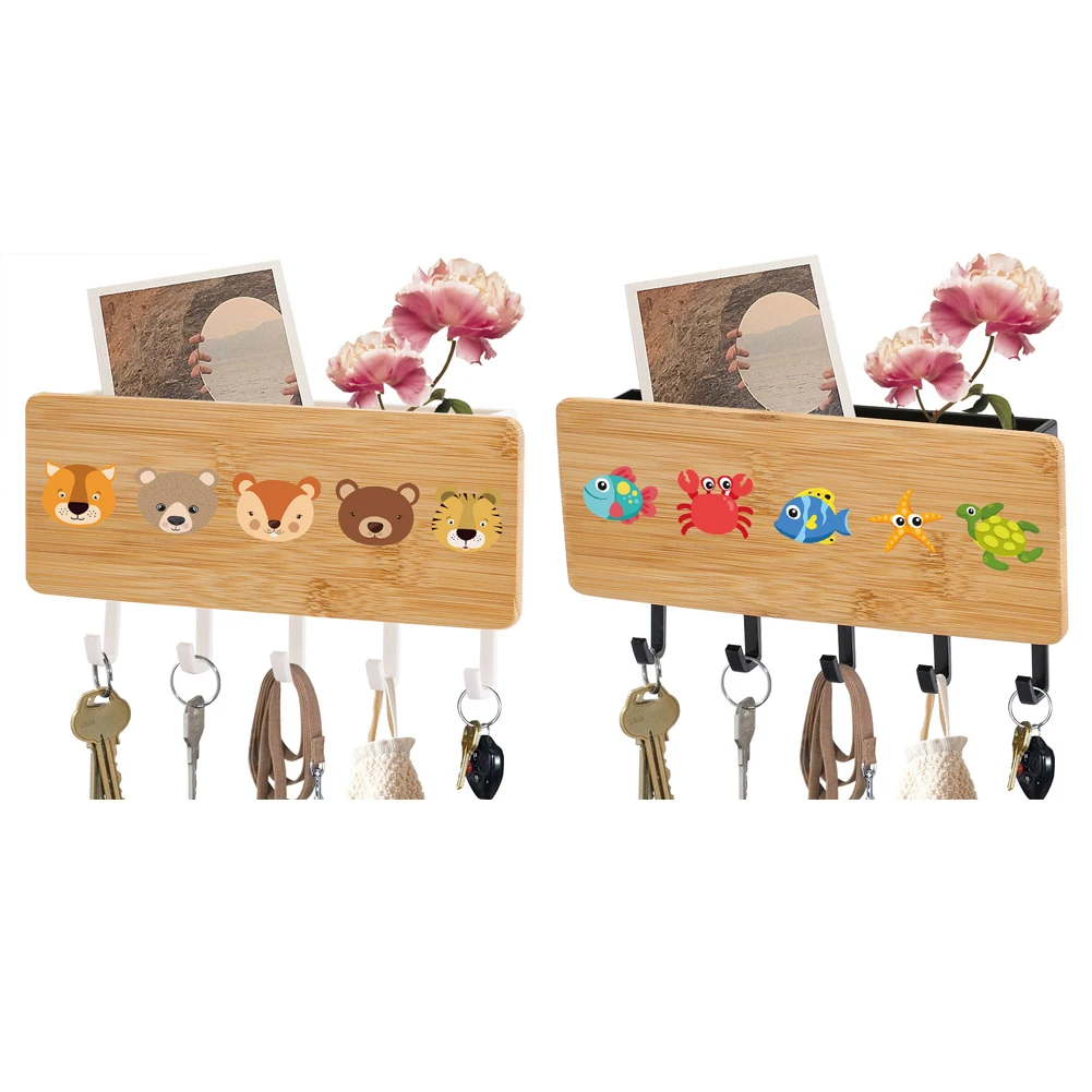 Деревянный держатель для ключей с мультяшными животными, 5 крючков