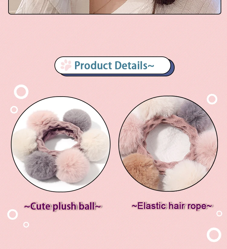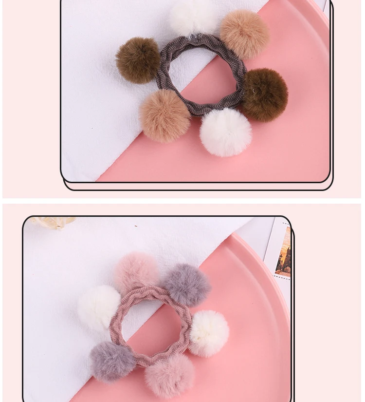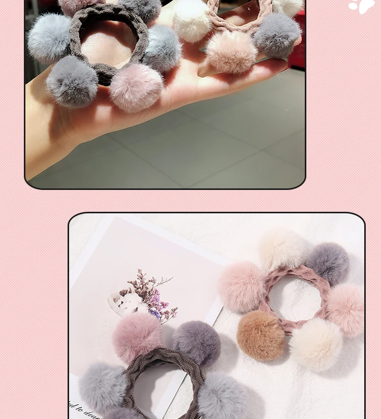 Модные милые Цвет плюшевая повязка для волос шарики ободки для волос резиновые резинки для волос в Корейском стиле головные уборы резинки для волос для женщин детские аксессуары по уходу за волосами