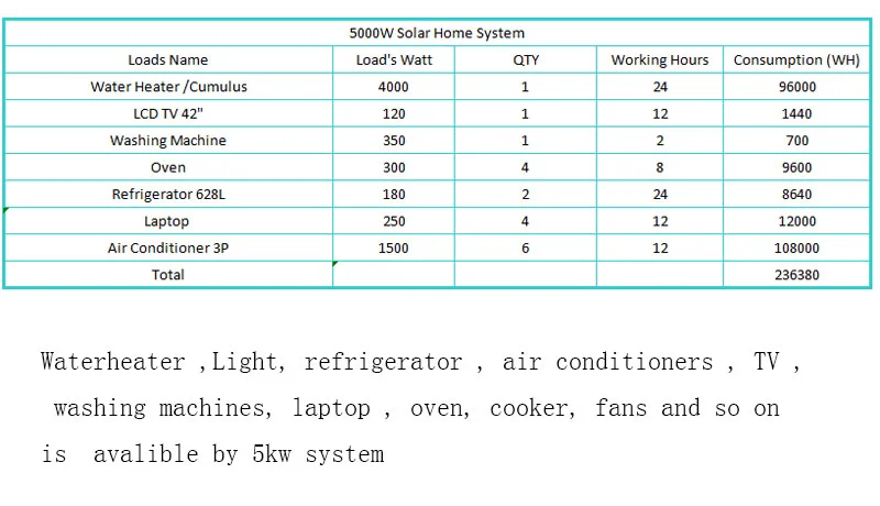 Мощность Нагрузки (W)Solar System With Batttery 5KW 5000W 220v 110v