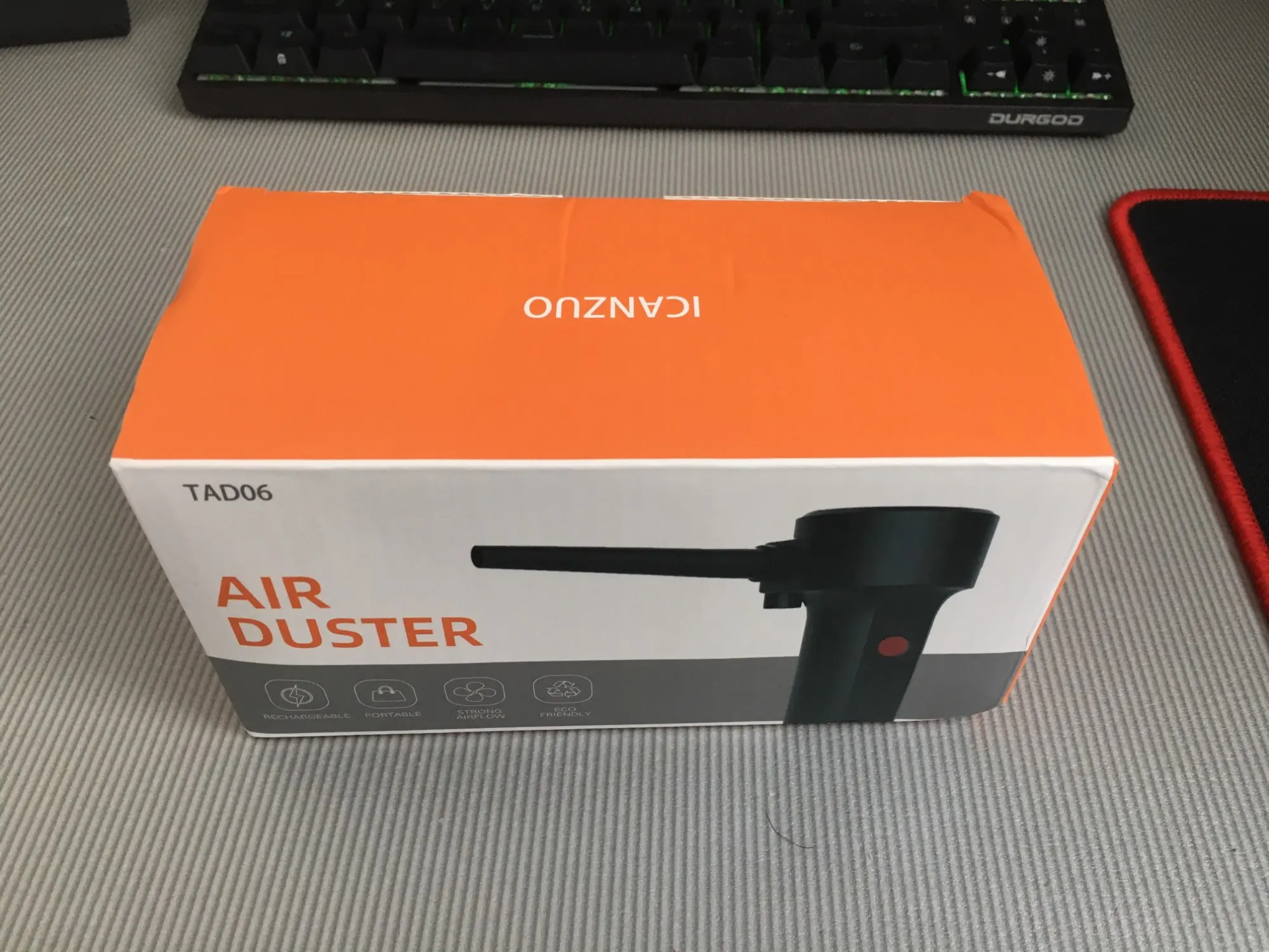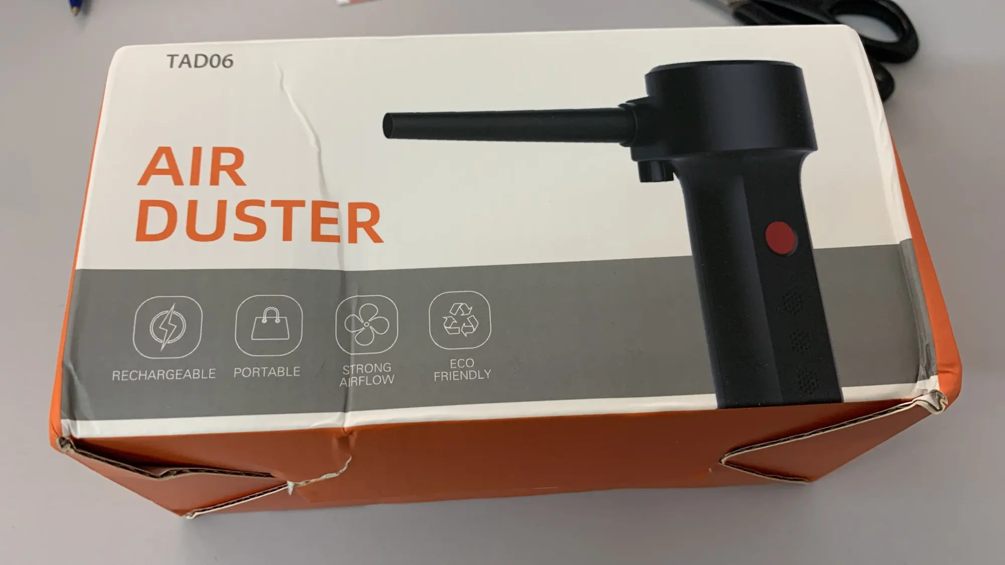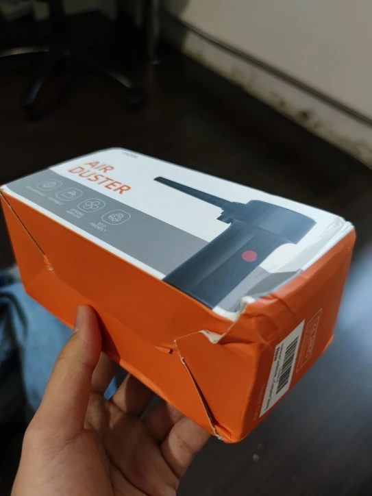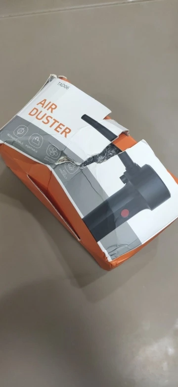 Упаковка немного помялась, главное внутри все целое. Аппарат выполнен качественно, при первом использовании чувствуется неприятный запах. В целом дует неплохо, струя конечно не как от сжатого воздуха, но для продувки компьютера и клавиатуры вполне подойдёт.