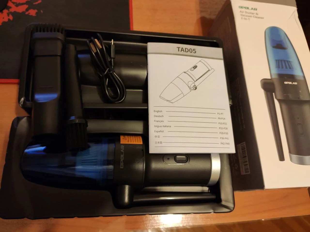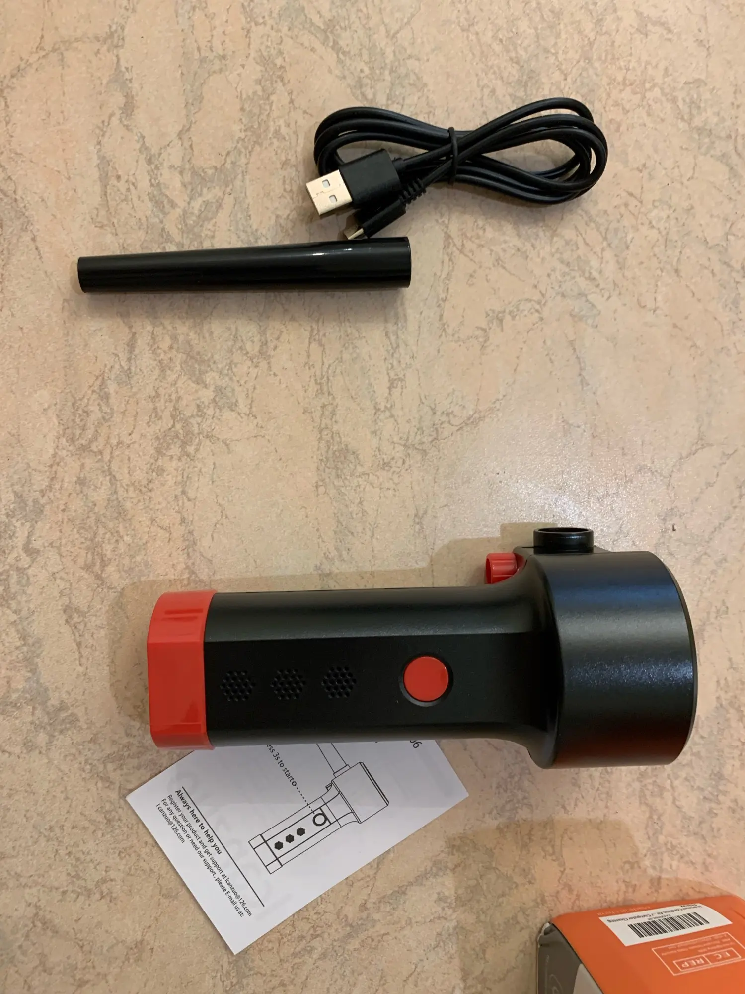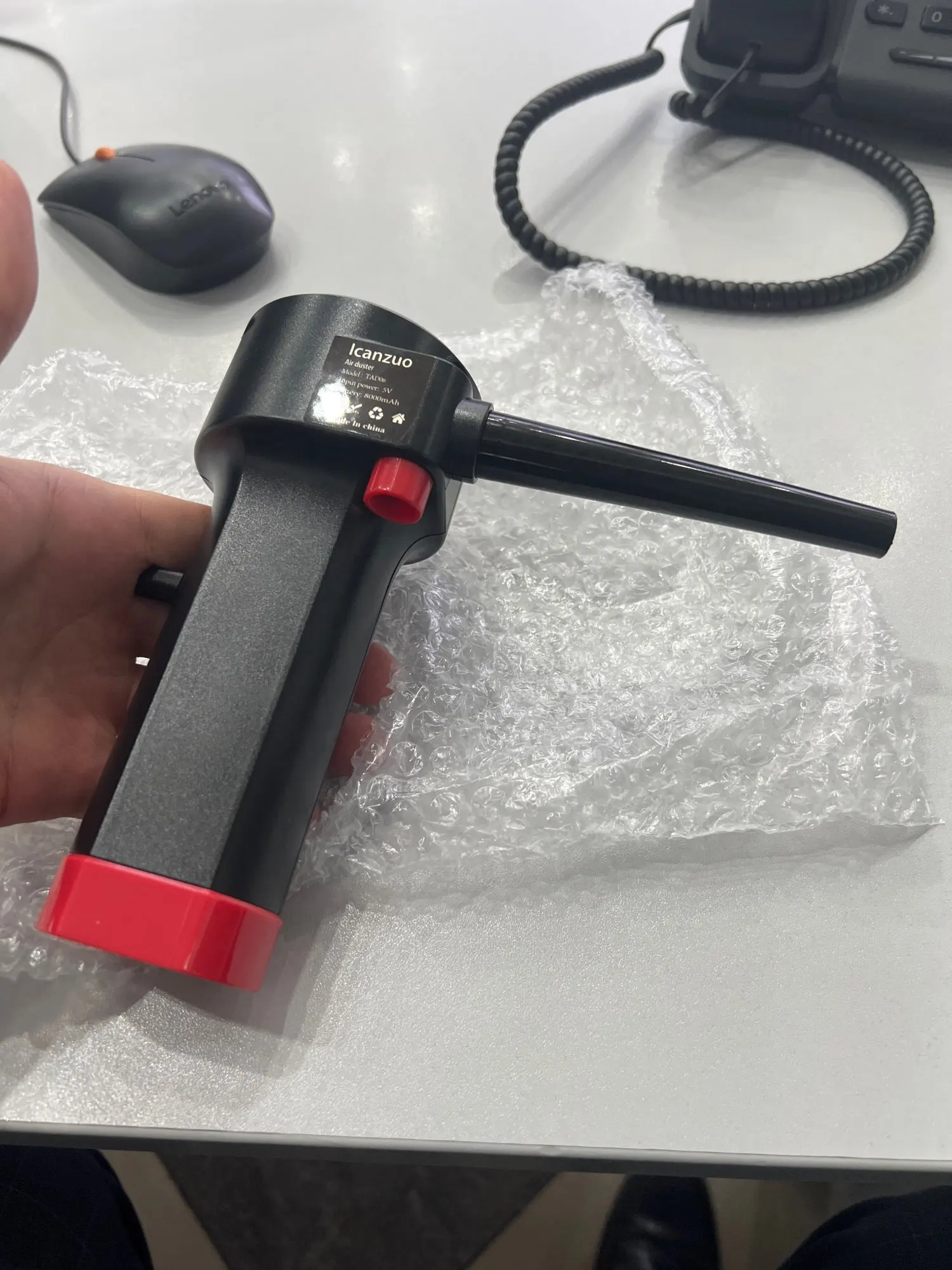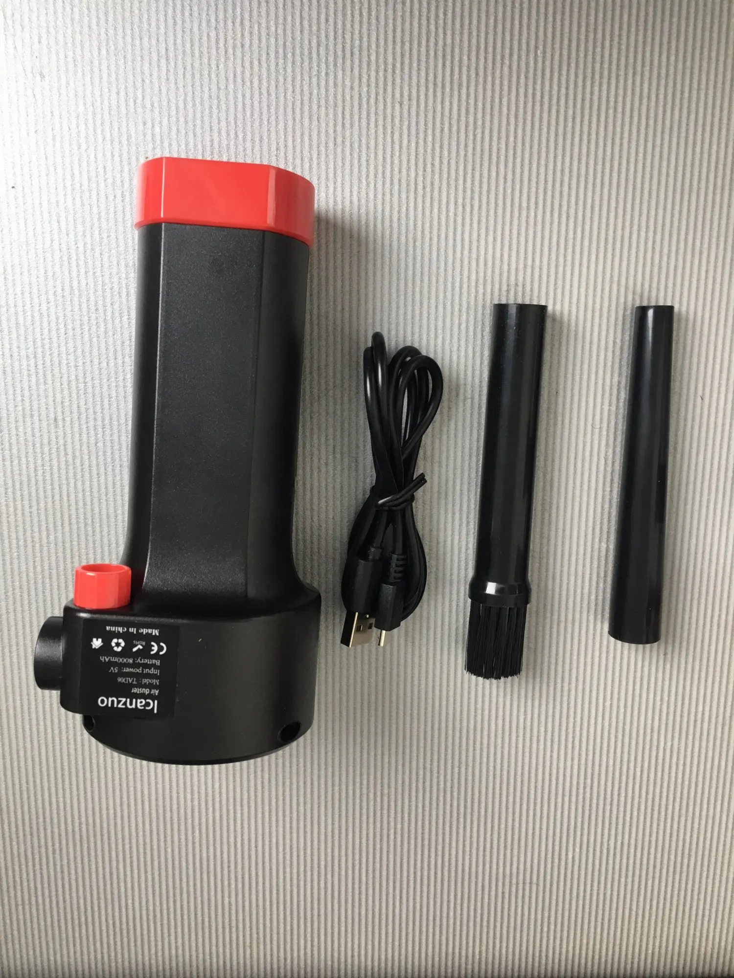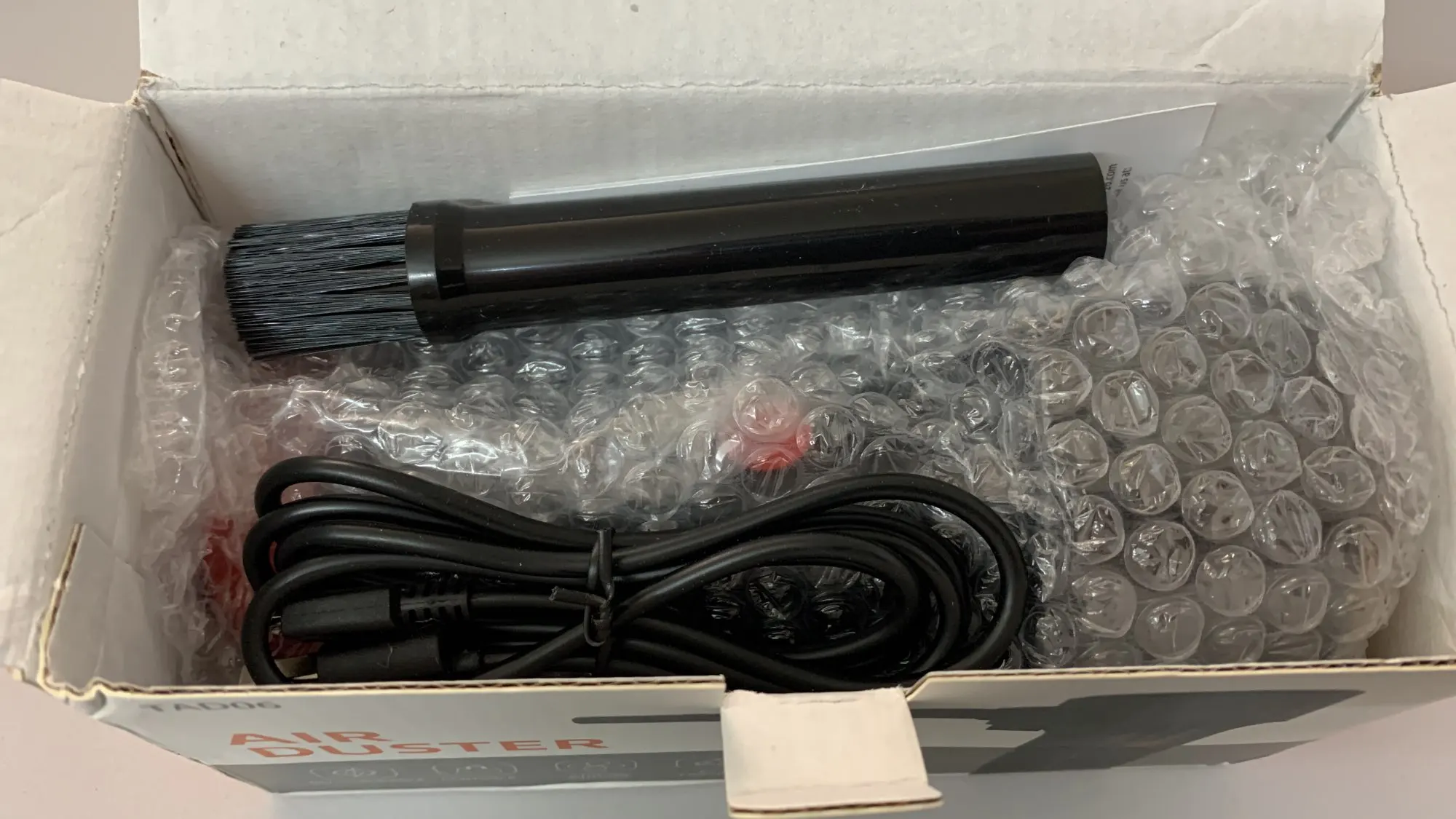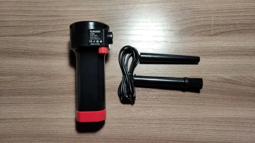 Пришло быстро, упаковано было плохо (по коробке видно), но пришло целым. В комплекте 2 трубки и провод зарядки micro usb. Дует прилично, для чистки компьютеров годится, хотя с радиатором процессора без снятия вряд ли справится на отлично, но большую часть грязи точно уберет.