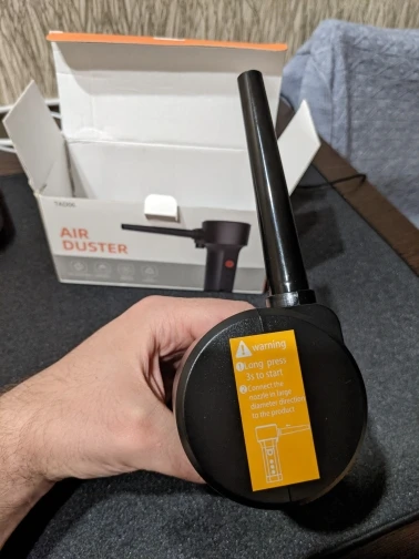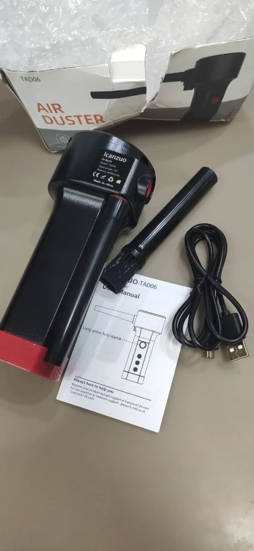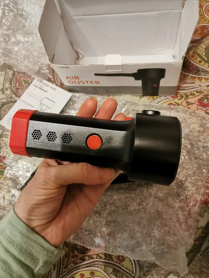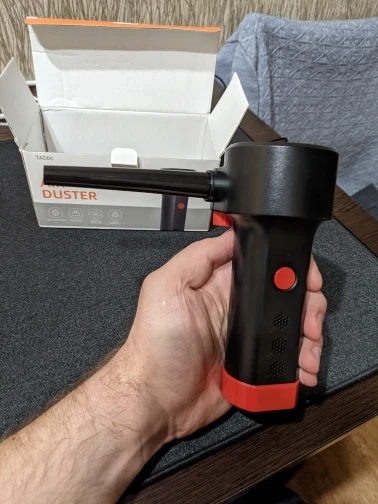 Быстрая доставка. Почти полностью заряжен (15-20 минут дозарядил и в бой). Мощность супер. Никакой сжатый воздух не нужен. За 5-7 минут очистил комп от тонны пыли. Однозначно рекомендую.