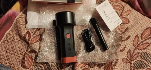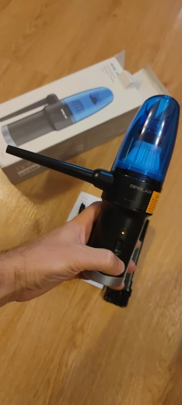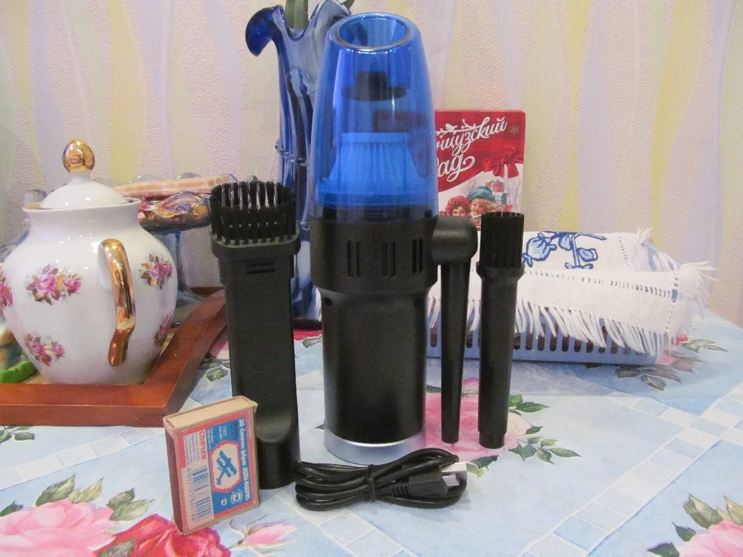супер быстрая доставка. получал в пункте выдачи озон. пришел заряженный. дует и сосет пыль для таких размеров очень даже ничего. имеет два режима (слабый и сильный). в комплекте провод зарядки микро УСБ, сменная насадка с щеткой для обдува и насадка с щеткой для пылесоса. фильтр после использования пылика, промывается под струёй воды. если получится как то уменьшить толщину сопла выдувания то, думаю, давление воздуха можно будет увеличить. советую данный товар к покупке, особенно если покупать в дни скидок и распродаж.