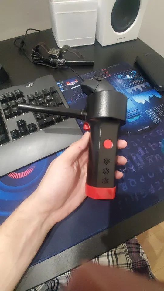Супер, дует сильно, даже держит пластиковый шарик (внутри аккумулятор, тяжелый шарик). Для продувки компьютера супер