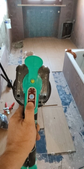 3. Поместите машину на плитку, которая будет заложена, удерживайте присоске и удерживайте плитку. Нажмите на выключатель, чтобы начать работу и мгновенно сровнять выступающую часть плитки.