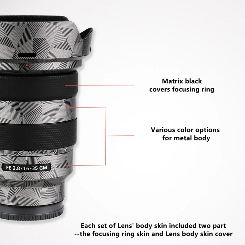 Винил премиум качества, используемый для этой наклейки, легко наносится-без суеты и беспорядка!Посылка включает только защитную пленку для автомобильной камерыСовместим с линзами Sony FE16-35F2.8GM(Смотрите видео ниже, чтобы получить полную информацию о том, как применять на корпусе камеры шаг за шагом)Воплотите свои самые красочные концепции в жизнь-практически на поверхностиАвтомобильный винил-идеальная защитная кожа для вашей камеры