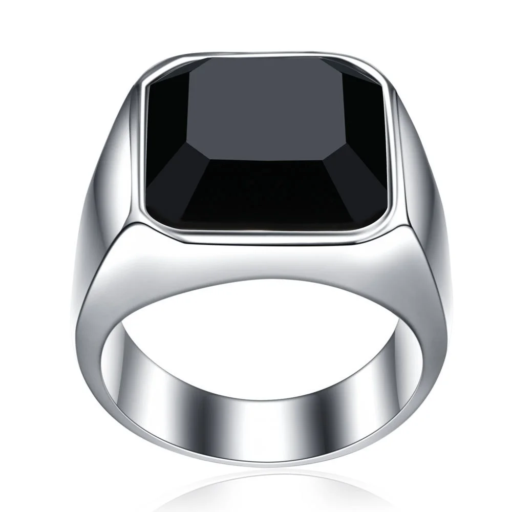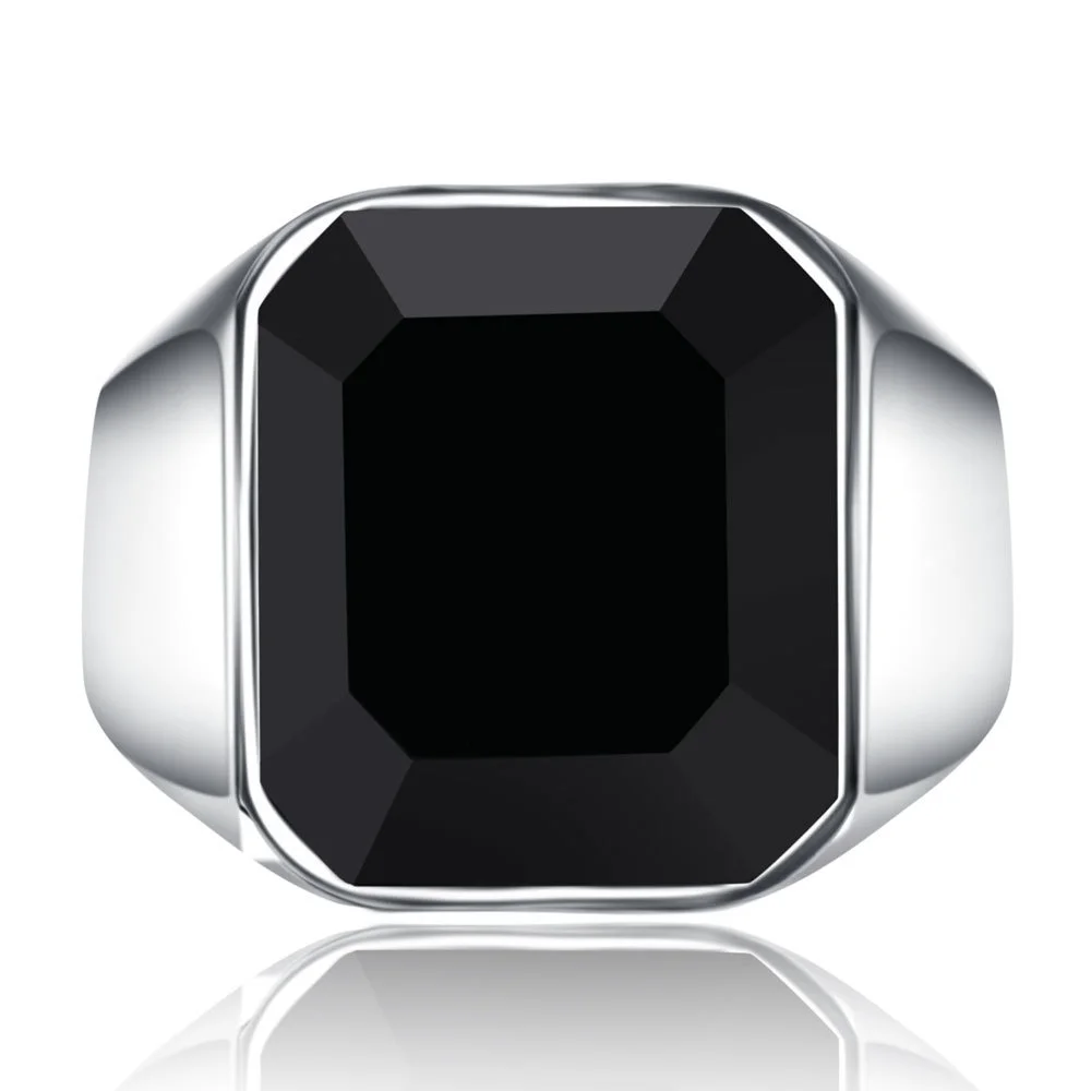 Классический деловой мужской черный серебряное кольцо с драгоценными камнями, в стиле панк, вечерние, ювелирное изделие для помолвки, свадьбы