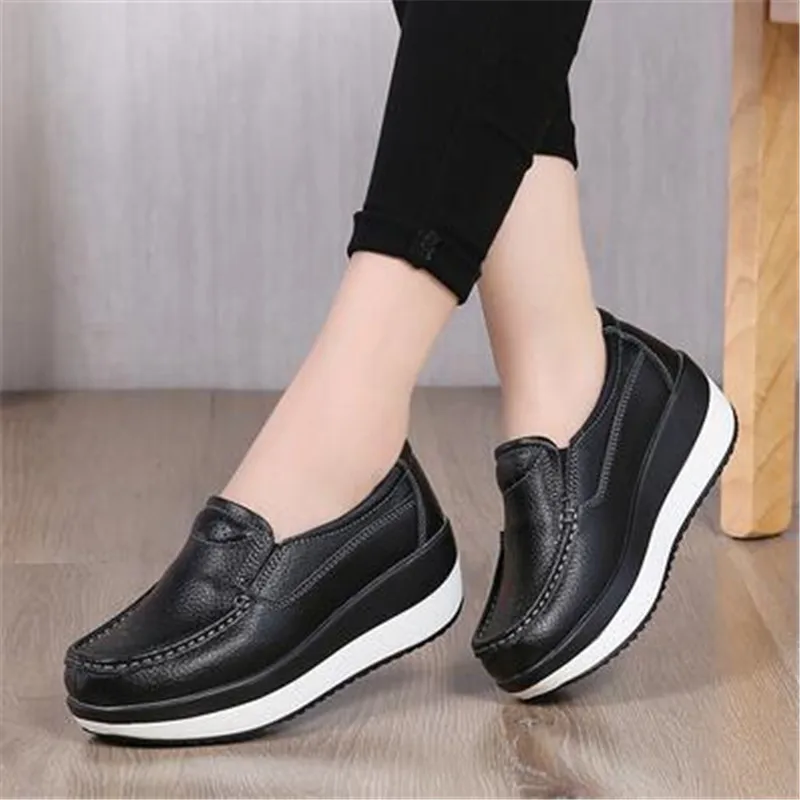 Туфли женские из натуральной кожи, кроссовки на платформе, без застежки, лоферы, танкетка, повседневная обувь, Мокасины, весна