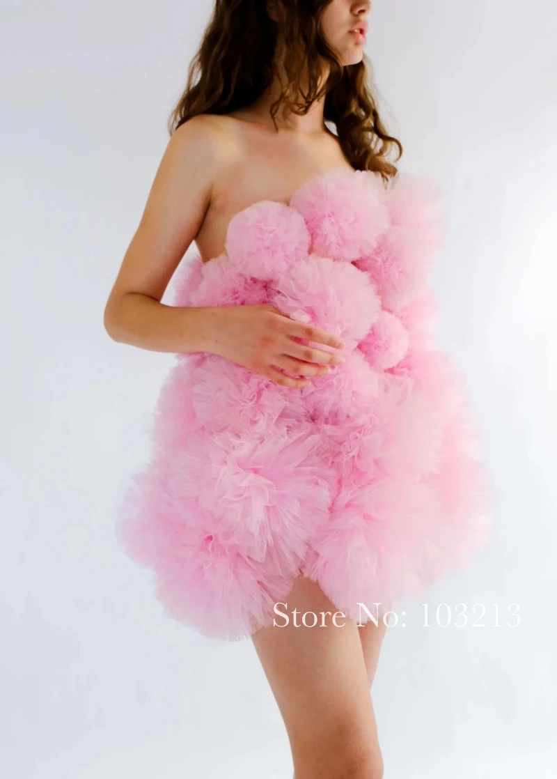 Новое Розовое Тюлевое короткое платье для выпускников для девочек, облегающее без бретелек, без рукавов, школьное платье Пышная юбка