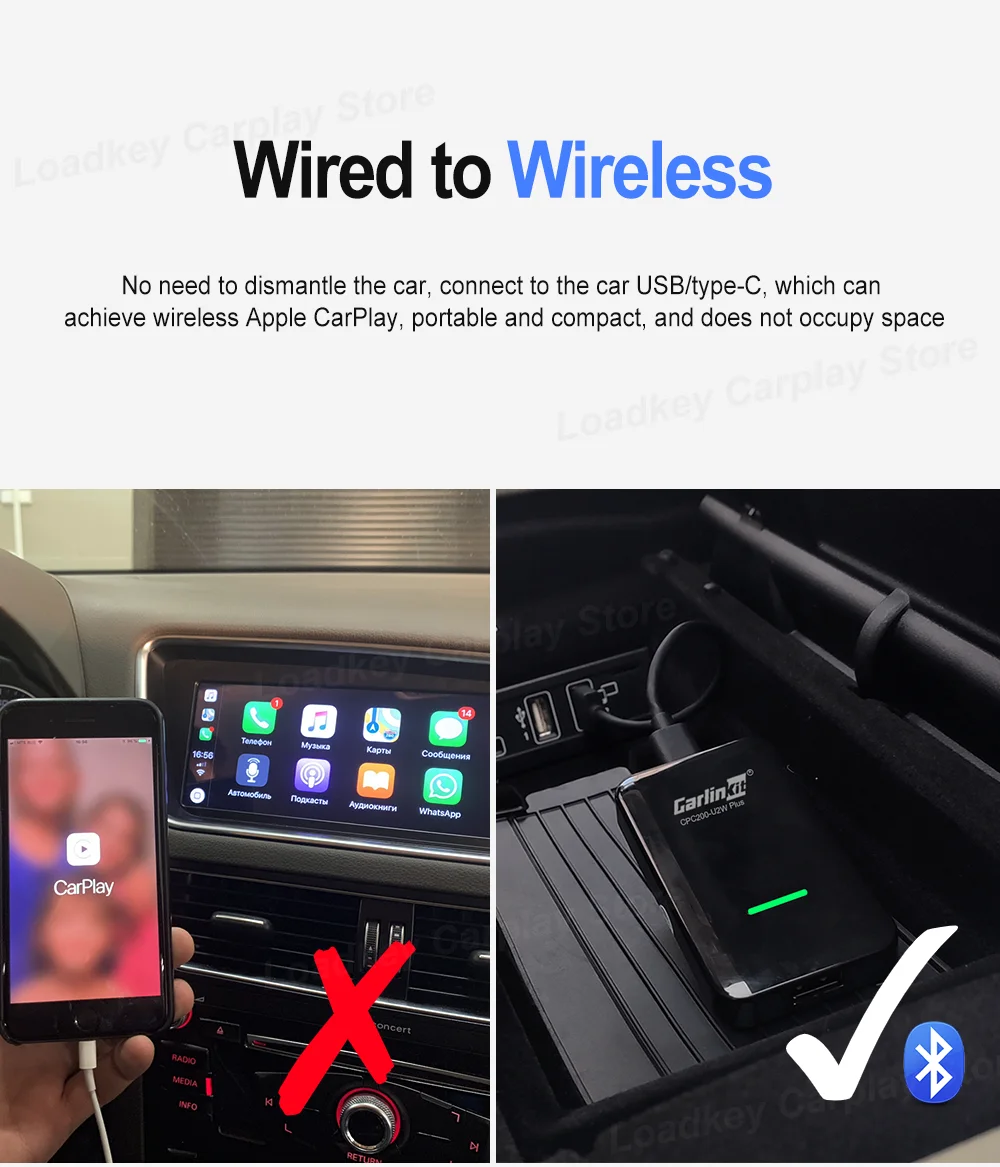 Carlinkit настоящим объявляет, что в отношении "Carlinkit 3.0 Wireless CarPlay Activator" на AliExpress: продукт такой же, как и Carlinkit 2,0. Мы только что сделали чип лучшего качества для обновления оригинального продукта. Чип делает продукт более стабильным и адаптируемым. Но в сущности, они имеют ту же функцию: пусть автомобиль встроенный проводной OEM CarPlay может использовать беспроводную CarPlay.