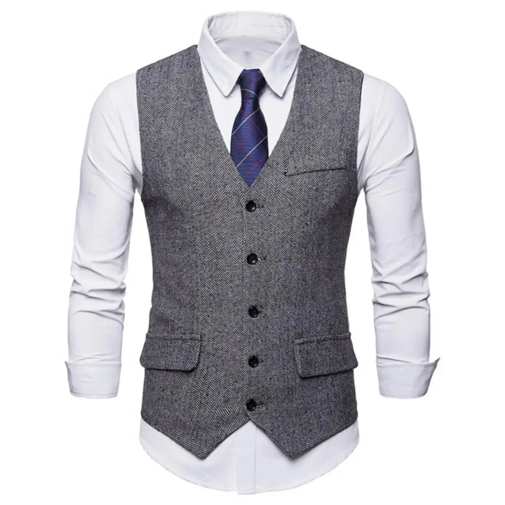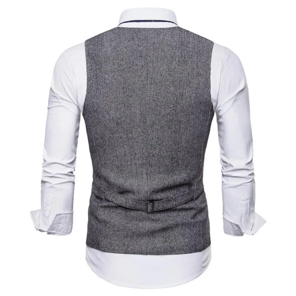 Жилет деловой мужской с V-образным вырезом, однобортный приталенный безрукавка в елочку, с карманами, для свадьбы, вечевечерние, XXL