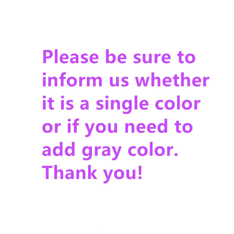 1. Мы предлагаем несколько общих цветов в свойствах продукта для вас на выбор. 2. Этот продукт поддерживает пользовательские цвета, вы можете предоставить нам название цвета или изображение, но будет определенная разница в цвете. Наиболее точный способ-предоставить нам цветовые значения CMYK. 3. Вы можете оставить сообщение или отправить письмо станции. 4. Если у вас есть какие-либо вопросы, вы можете связаться с нами перед размещением заказа, спасибо!
