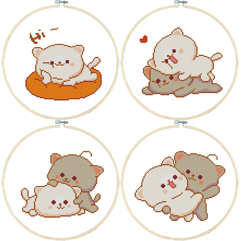 Набор для вышивки крестиком Joy Sunday с маленькими простыми мультяшными рисунками, кошками, животными, Набор для вышивки новичков и детей