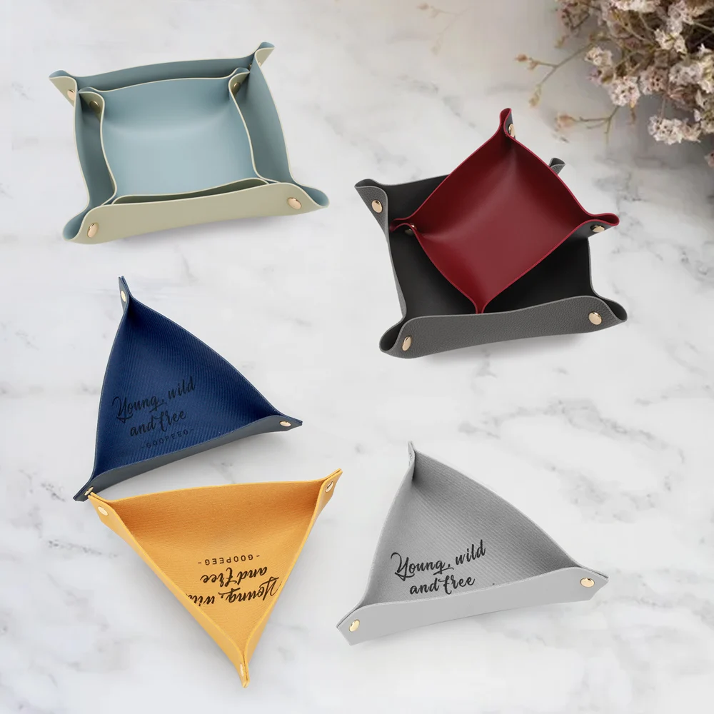Настольный поднос для хранения, Кожаная подставка для ключей, домашний декор, лоток для макияжа, поднос для ключей, кошелька для монет, складной контейнер для хранения из искусственной кожи многоразового использования