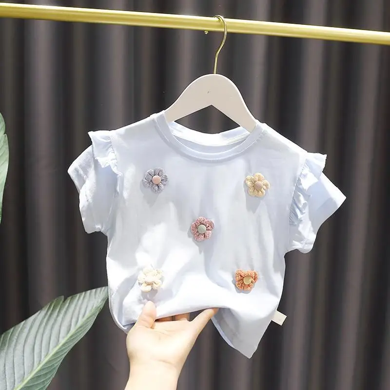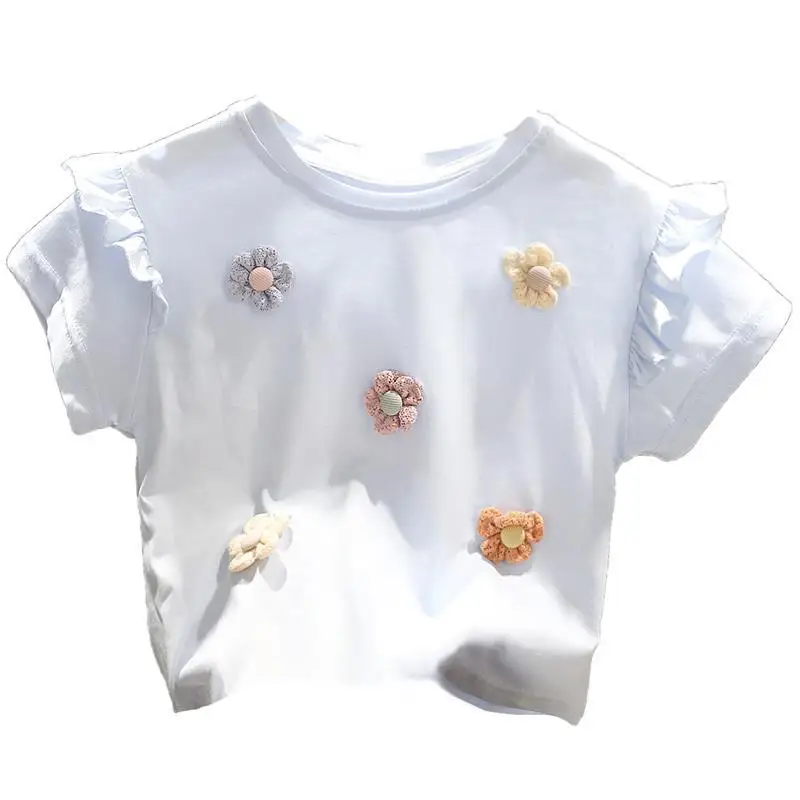 Блузки для маленьких девочек, хлопковые детские топы, летняя детская одежда, рубашка для девочек с коротким рукавом для младенцев, малышей