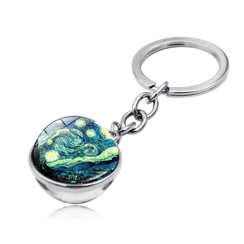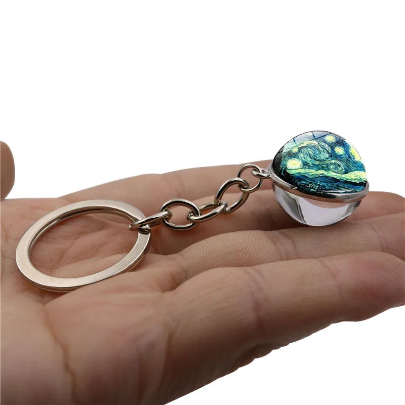 Брелок с подсолнухом в стиле ретро Ван Гога, ювелирный брелок с двухсторонней подвеской в виде стеклянного шара звездной ночи, 12 моделей