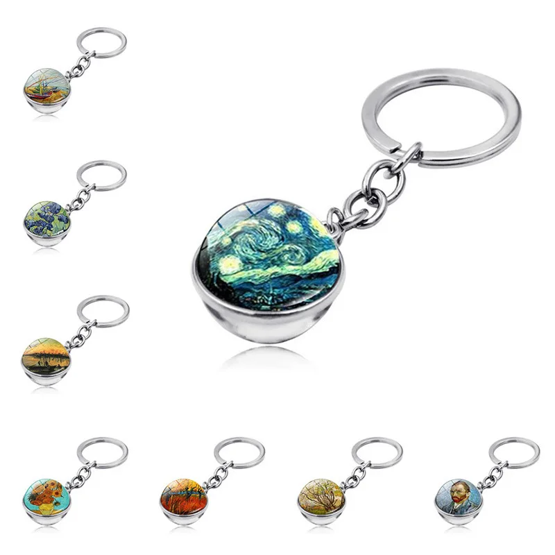 12 стилей ретро Ван Гог арт Звездная ночь Подсолнух брелок кабошон двухсторонний стеклянный шар кулон брелок ювелирный брелок