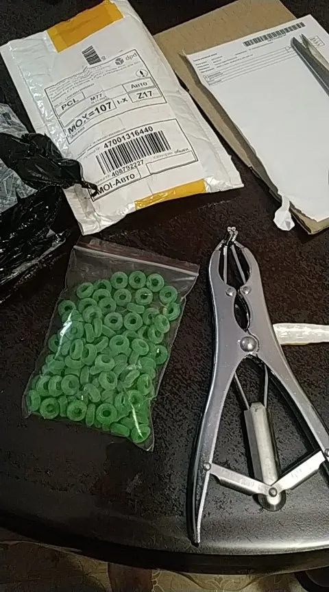 Быстрая доставка. Инструмент и кольца высокого качества, которые я буду использовать для удаления рогатого скота.