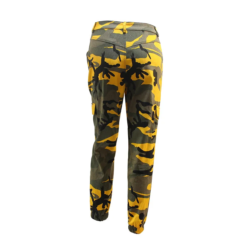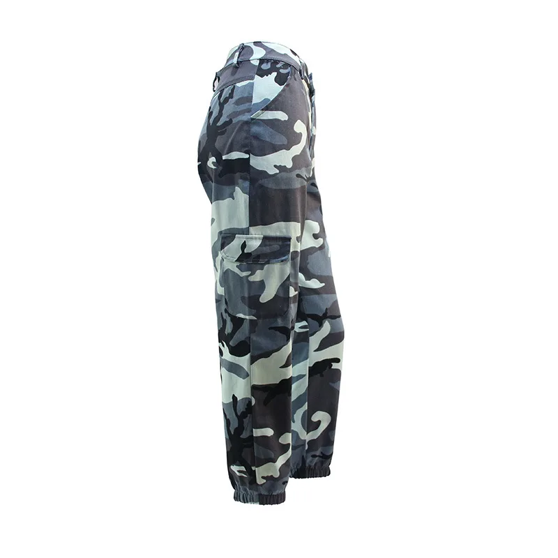 Брюки женские хлопковые камуфляжные до щиколотки, с высокой талией
