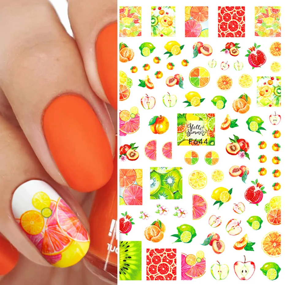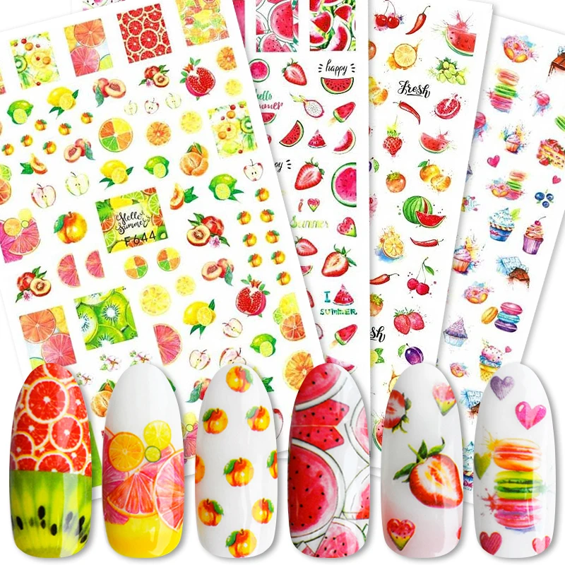 3D наклейки для ногтей, Летние фрукты, арбуз, клубника, авокадо, 1 шт.