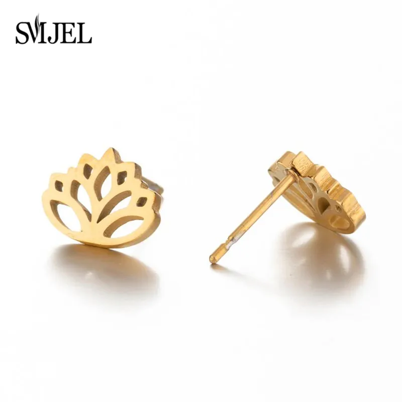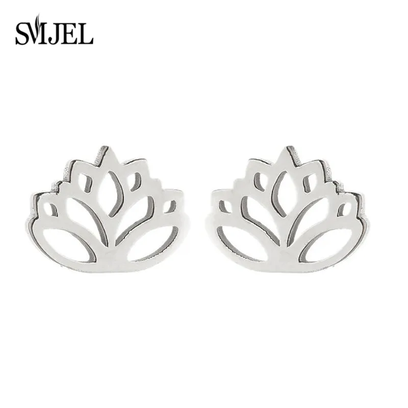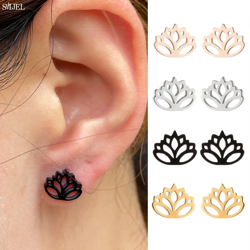Черные крошечные серьги цветок лотоса для женщин в богемском стиле для девочек из нержавеющей стали растений кактуса Лили гвоздики дерево, серьги, ювелирное изделие, модные серьги в форме