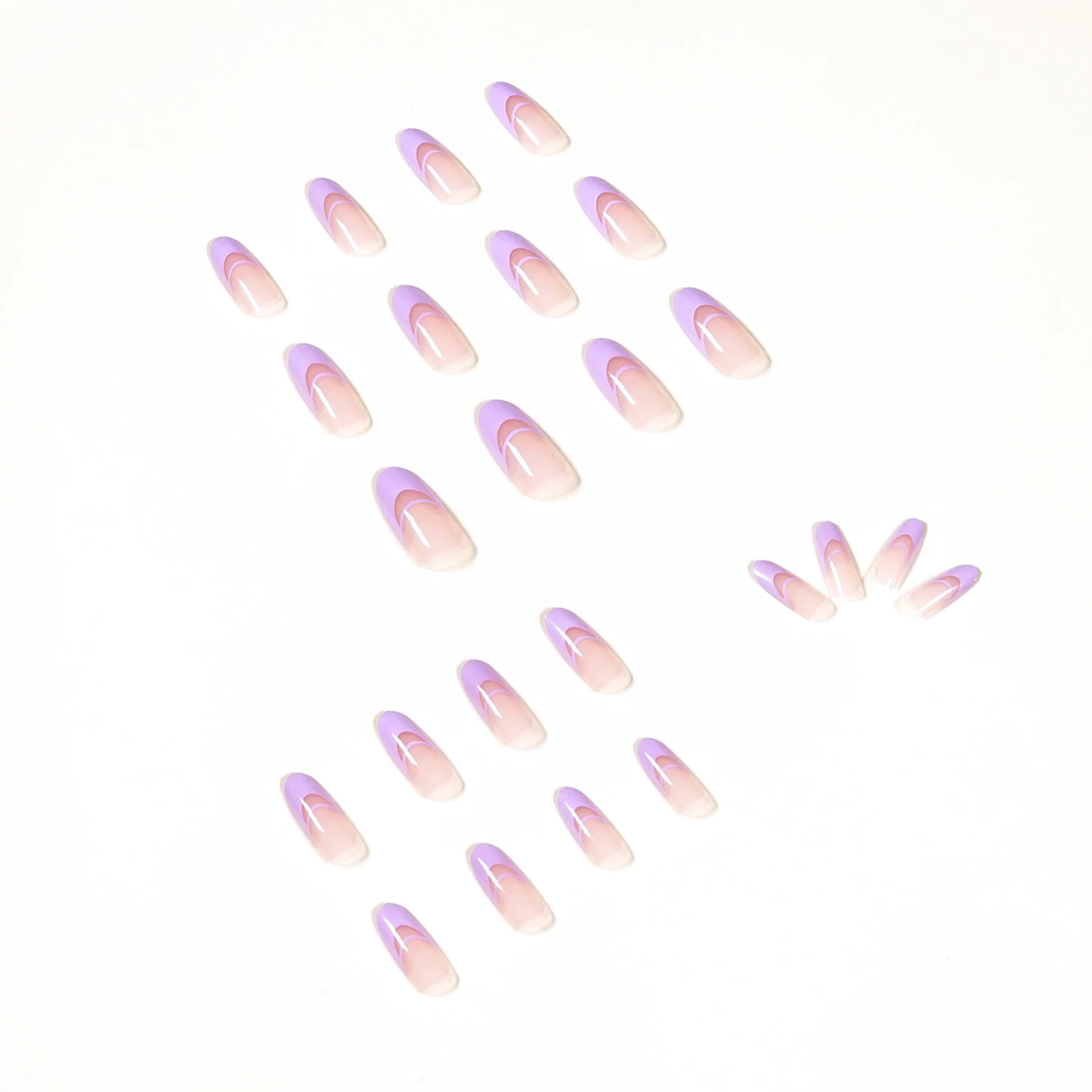 Накладные ногти миндаль белый цветок стилет фиолетовый французский съемные накладные ногти балерина полное покрытие нажимные ногти накладные ногти Декор