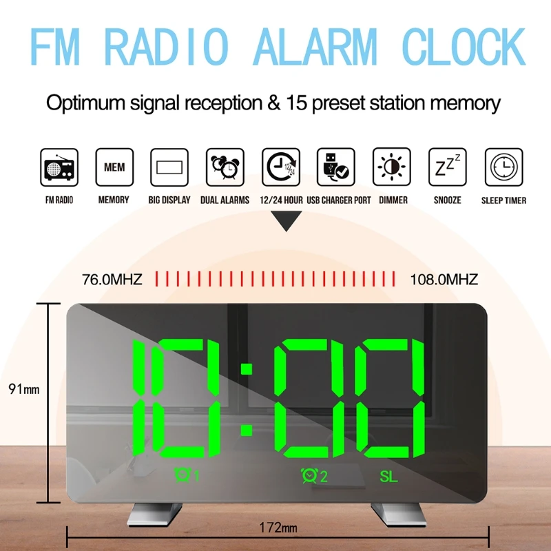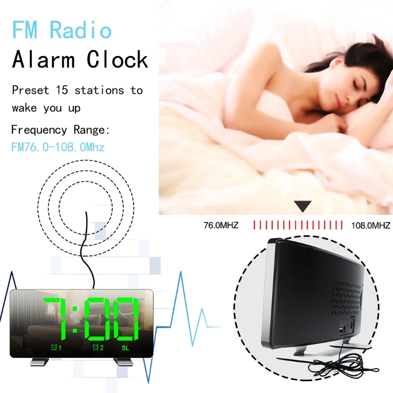 Цифровой светодиодный зеркало автомобиля радио Будильник Повтор эле...