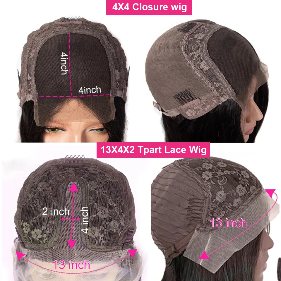 Индийские волосы, волнистые, на сетке, фронтальные парики для женщин, парик с застежкой 4x4, человеческие волосы, средняя, коричневая, T-образная часть, на сетке, средняя боковая часть, волосы без повреждений