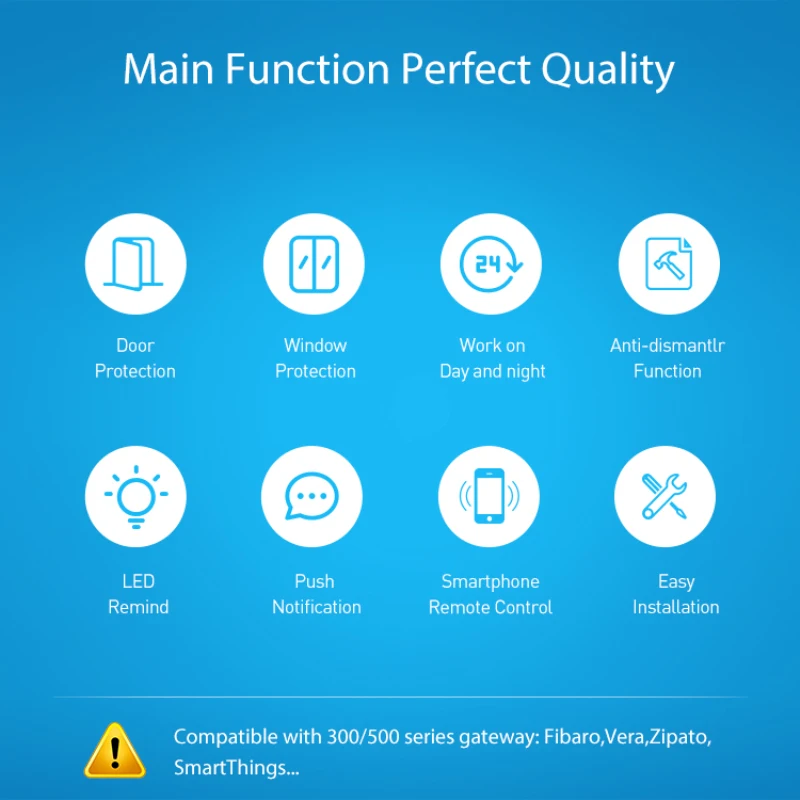 Наши датчики совместимы со следующими брендами сигнализации: Fibaro/Smarthings/Vera/Zipato/Iris/Wink.