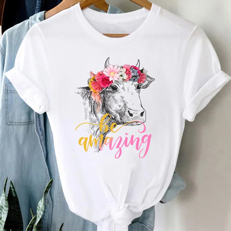 Летняя футболка 2021 с изображением животного из мультфильма корова Графический Футболка Harajuku Женский, а также повседневной одежды с короткими рукавами футболка для женщин размера плюс 3XL