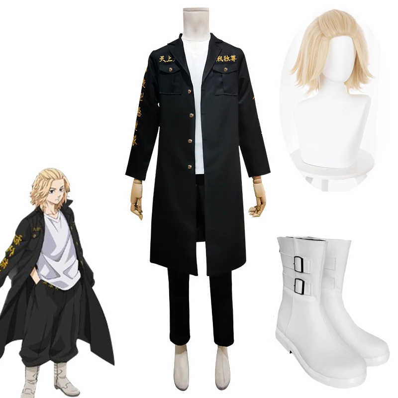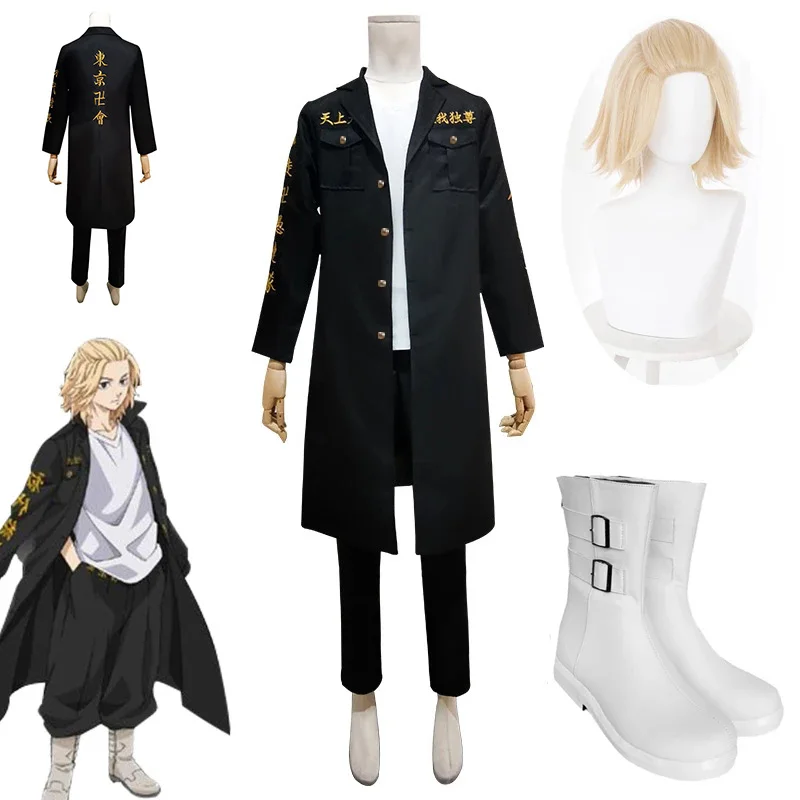 Костюм для косплея Sano Manjiro из аниме Токийский мстители, Униформа Майки, пальто для взрослых, Тренч Сано мангиро, обувь для Хэллоуина