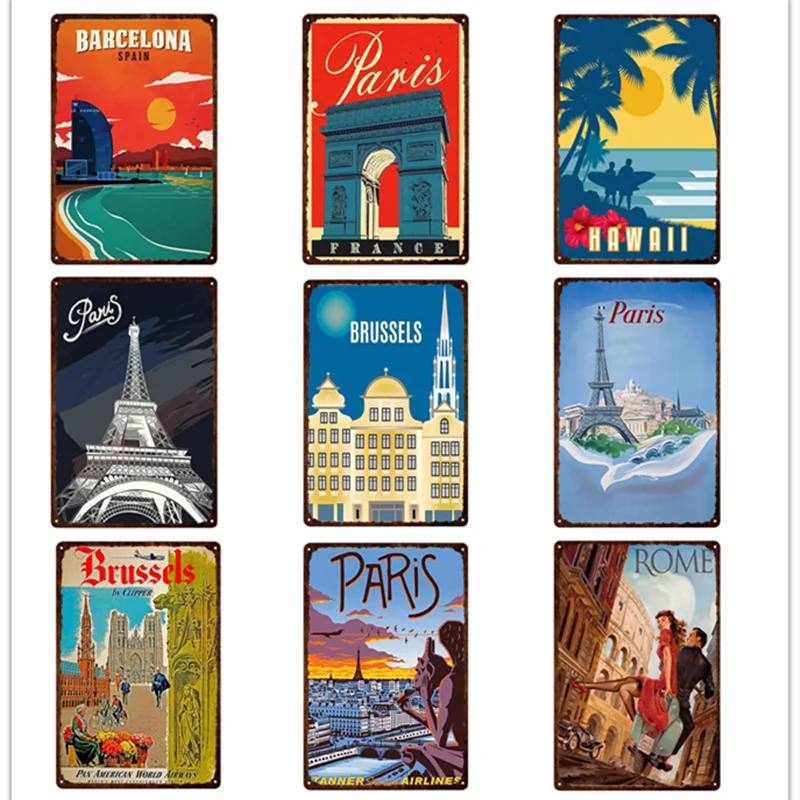 Металлический знак в виде города рома из Парижа, винтажные металлич...
