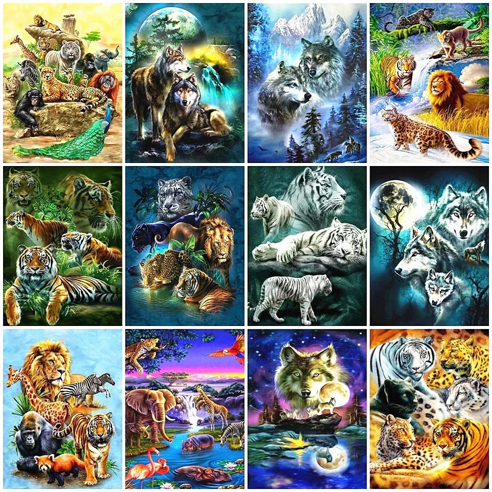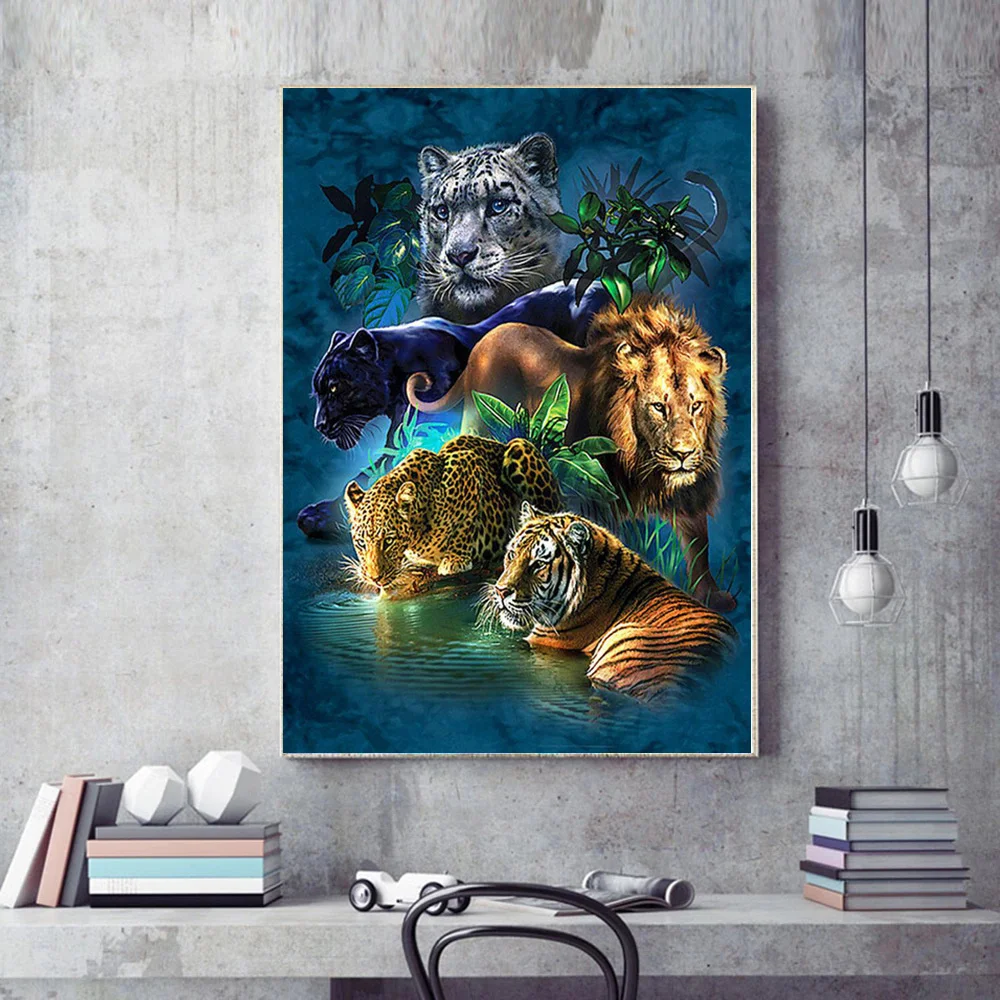 Алмазная живопись 5D Лев мозаика с тигром Алмазная вышивка ручной работы, леопард, животные, картина для стразы, подарки