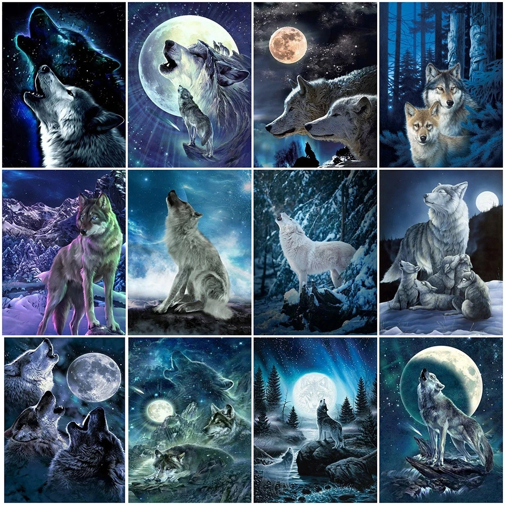 Huacan алмазная вышивка 5д животные Алмазная мозаика живопись волк...