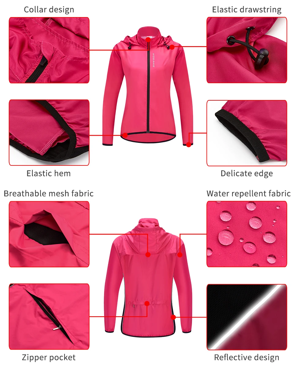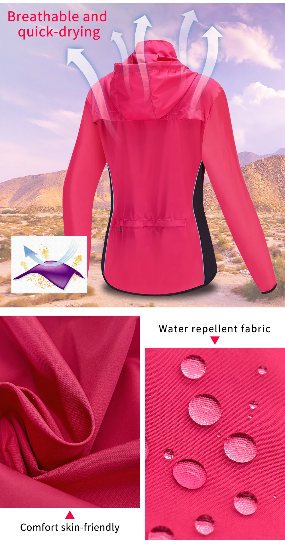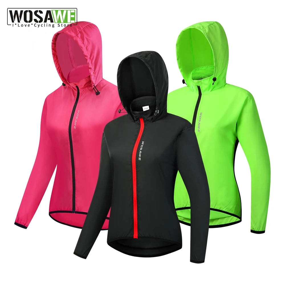 WOSAWEДля женщинВетровка с капюшоном для верховой езды, легкий ветрозащитный водонепроницаемый топ для бега, Спортивная быстросохнущая велосипедная майка