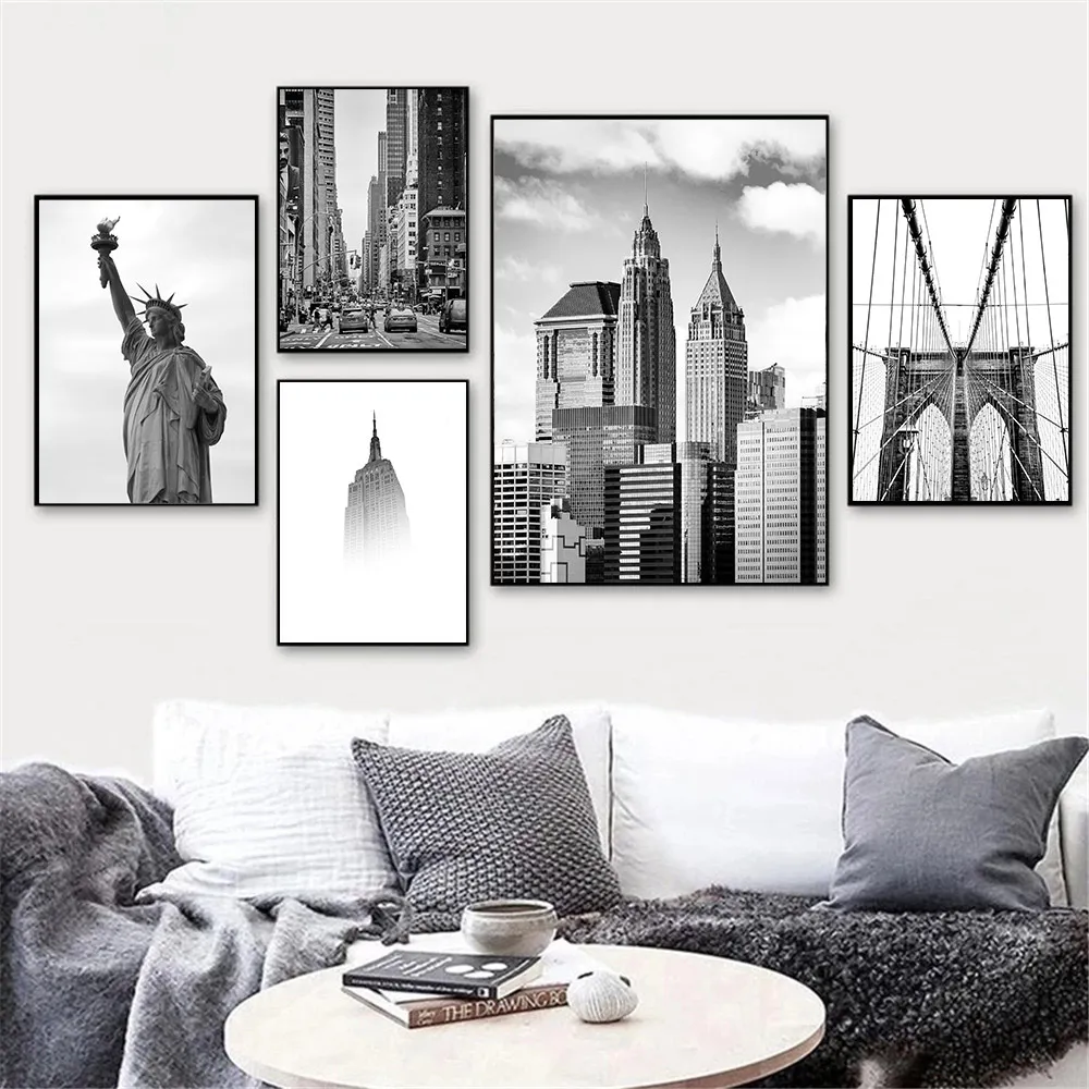 Холст с изображением статуи Свободы Нью-Йорка, черно-белая картина, городской уличный пейзаж, настенный плакат, картина в скандинавском стиле, домашний декор